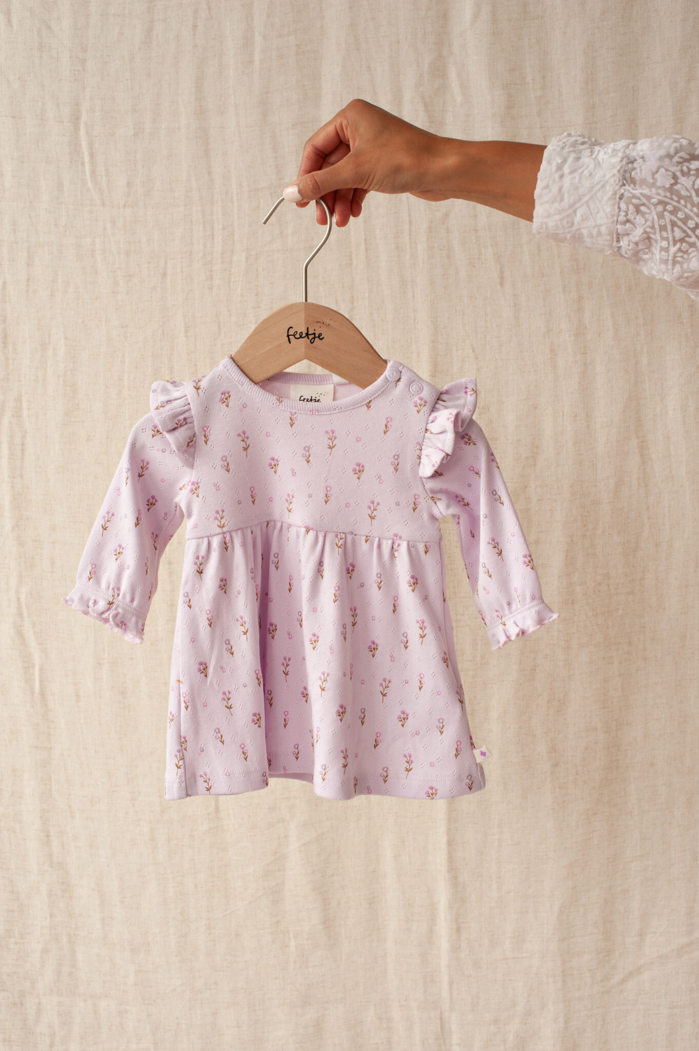 Jurk pointelle rib AOP - Flower Ranch - Lila