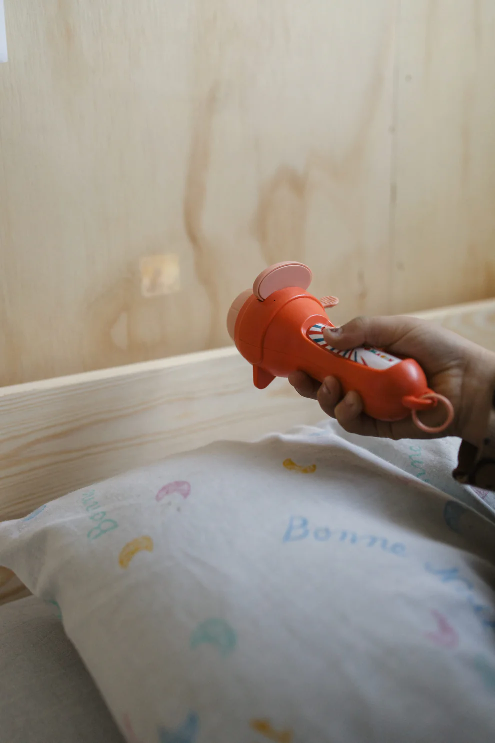 De KIDYSLIDE verhalenzaklamp maakt van bedtijd een magisch avontuur. Door prachtige beelden op de muur of het plafond te projecteren, kunnen kinderen of ouders spannende verhaaltjes vertellen voor het slapengaan. Met zijn zes gevarieerde verhaaltjes en drie aantrekkelijke kleuren biedt KIDYSLIDE een bijzondere ervaring die de verbeelding van kinderen stimuleert en tegelijkertijd momenten van rust en ontspanning bevordert.