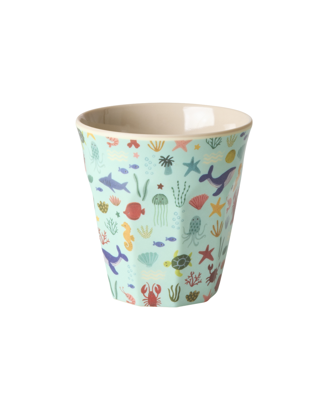 Het populaire melamine bekertje voor kinderen - met een oceaanthema in blauwe tinten. Melamine is duurzaam en ideaal voor dagelijks gebruik, omdat het sterk en makkelijk schoon te maken is. Het materiaal zorgt ervoor dat het bekertje voor van alles en nog wat te gebruiken is - als drinkbeker, voor snacks of kleine spulletjes, voor een picknick of mooie bloemen. Let op: het product is niet geschikt voor de magnetron.