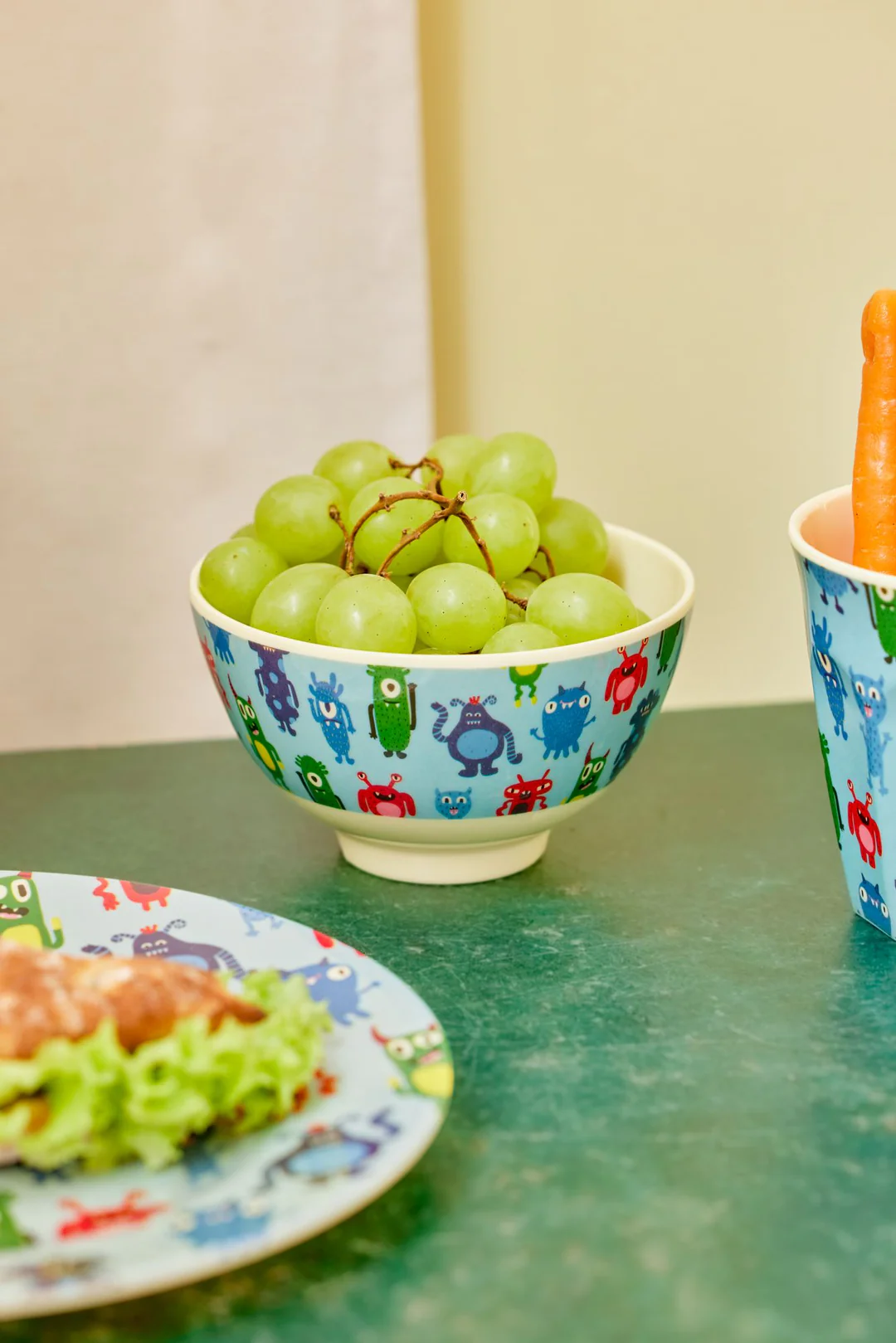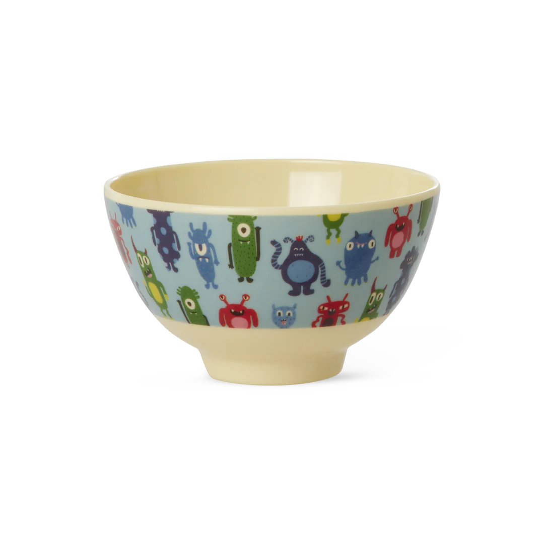 Geweldig melamine kommetje met de stoere “Monsters” print aan de buitenkant en een felblauwe kleur aan de binnenkant. Melamine is duurzaam en ideaal voor dagelijks gebruik, omdat het stevig en eenvoudige te reinigen is. Het absorbeert geen kleur of smaak van voedsel - hierdoor is het kommetje niet alleen leuk maar ook functioneel!