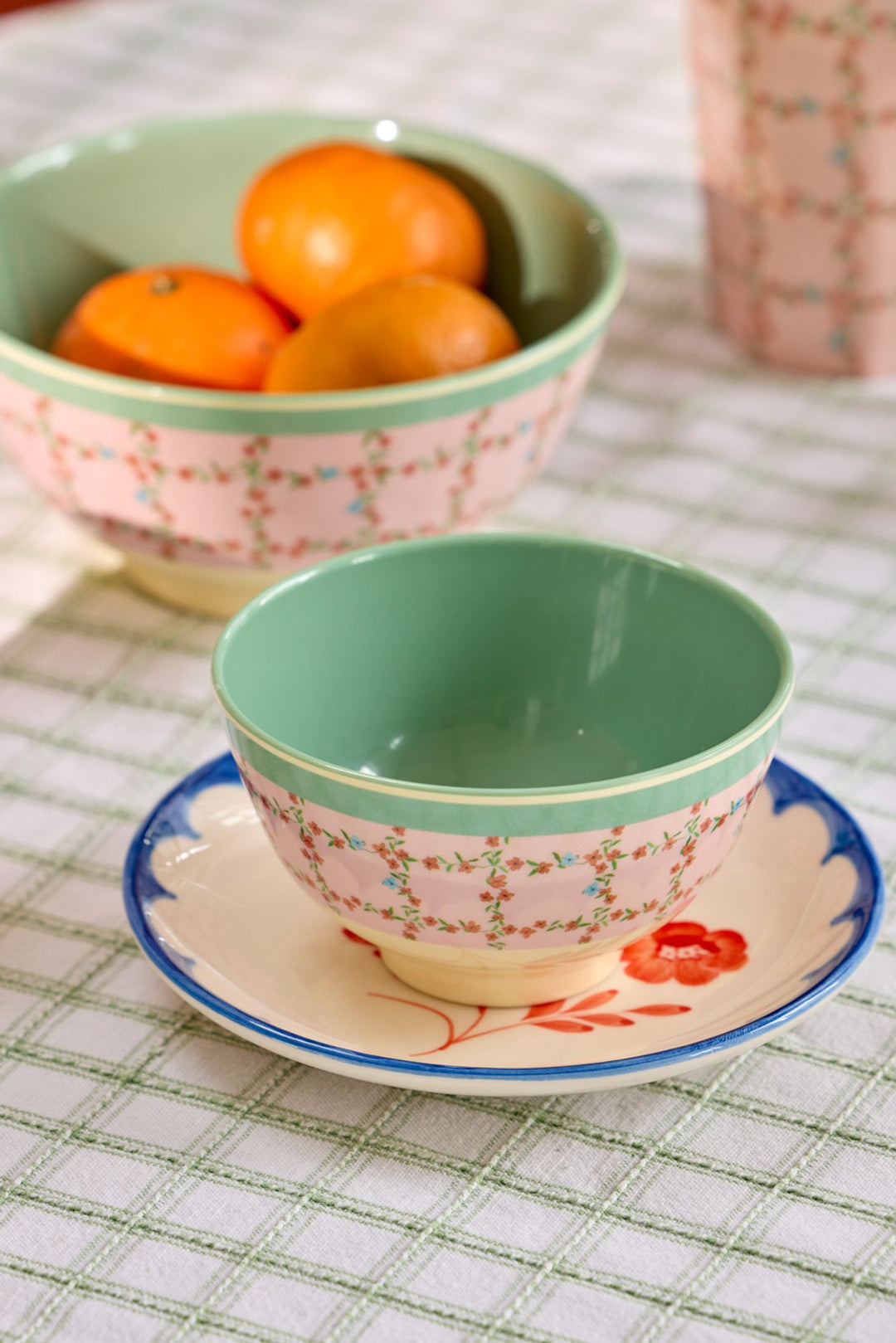 Prachtige, kleine kom met de mooie “Checkered Stencil” print aan de buitenkant en de kleur “Pistachio” aan de binnenkant. De kom is gemaakt van melamine, dat duurzaam is en ideaal voor dagelijks gebruik vanwege de sterkte en eenvoudige reiniging - waardoor de kom de perfecte multifunctionele kom is! Let op: het product is niet geschikt voor de magnetron.