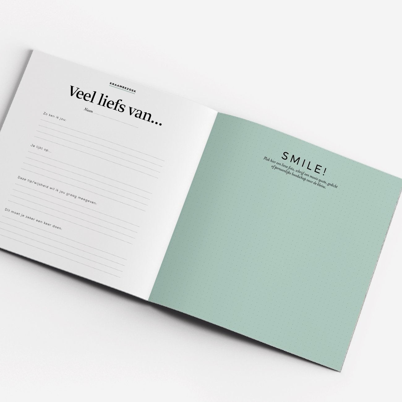 Door de diverse mogelijkheden in het kraambezoekboek kan er door het bezoek zelf gekozen worden, wat bij hen past. Zij kunnen kiezen uit; een mooie quote, een persoonlijke boodschap of een invulpagina in willen vullen.