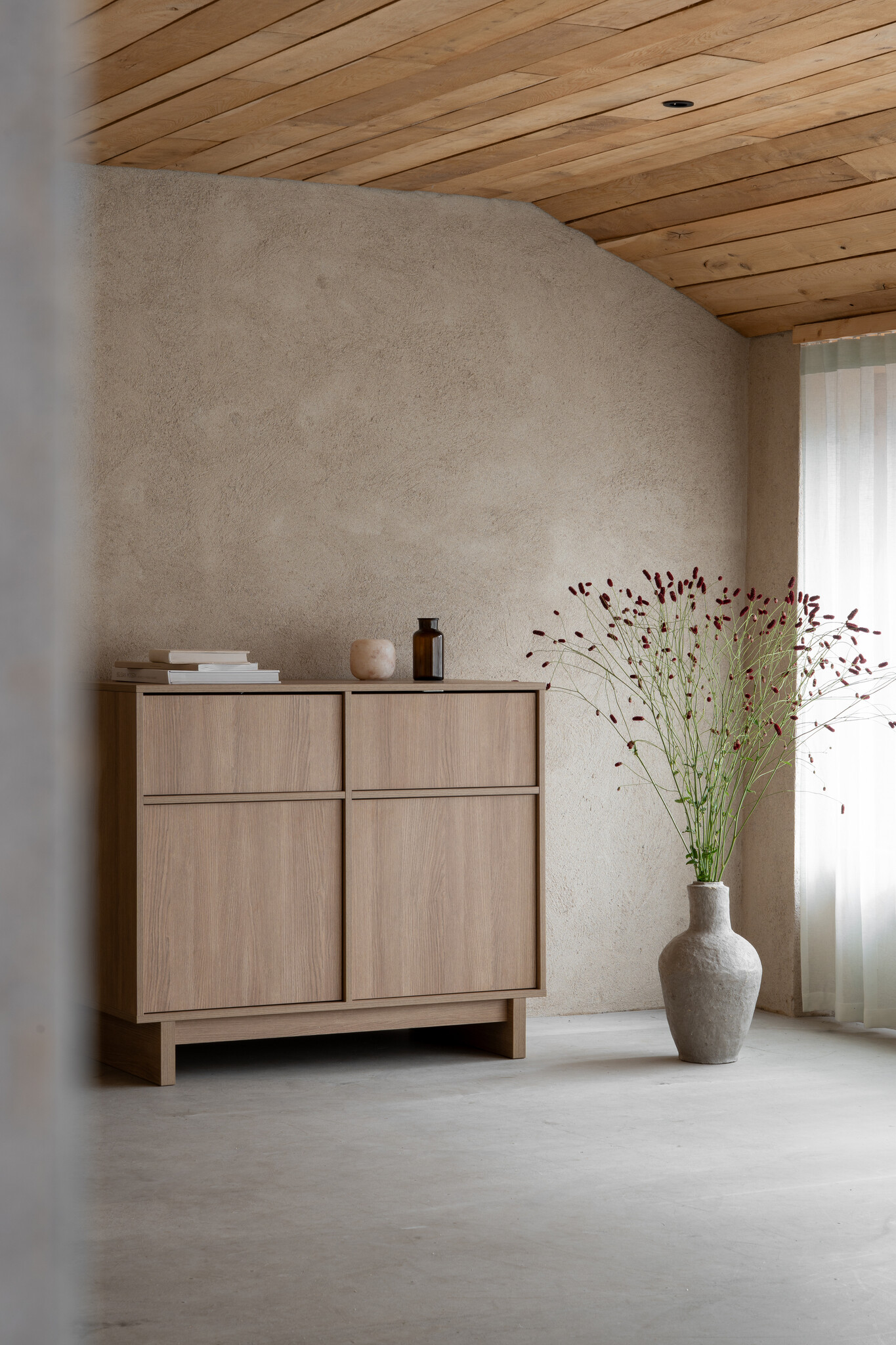De combinatie van Scandinavische rust en subtiele Japanse invloeden geeft de commode een serene en tijdloze uitstraling.
