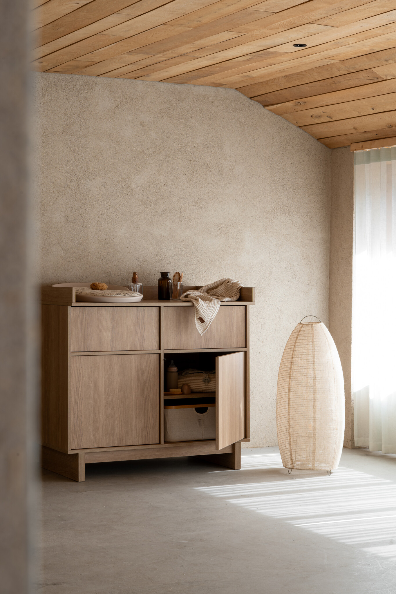 Een praktisch detail dat perfect past in de Kyo kast of commode. Dit opbergmandje is ontworpen in harmonie met de warme, ingetogen uitstraling van de collectie en biedt een praktische oplossing om kleine spullen netjes op te bergen.