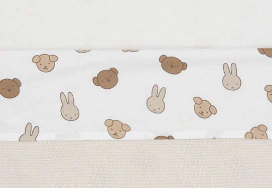 Dit laken heeft een all-over print van Miffy en haar vriendjes. Het is een vrolijk en speels lakentje dat de babykamer meteen een leuke uitstraling geeft. Perfect voor kleine Miffy-fans en ideaal te combineren met andere items uit de Miffy and Friends collectie!