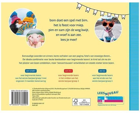 Korte dierenverhaaltjes voor beginnende lezers op AVI-niveau M3! Over een hond op een skateboard, een hamster die jarig is, twee pinguïns die de weg kwijt zijn en nog veel meer. Alle verhalen zijn geschreven op een eenvoudig leesniveau (AVI M3) zodat kinderen ze al helemaal zelfstandig kunnen lezen! De reeks 'Leesbeesten' van Deltas combineert een aantal dingen die ervoor zorgen dat kinderen als een speer vooruit gaan met leren lezen: - eenvoudige woorden en zinnen - korte, leuke verhalen van een pagina - vrolijke foto's van dieren Hierdoor blijven kinderen pagina na pagina gemotiveerd en ontdekken ze al snel het plezier van lezen!