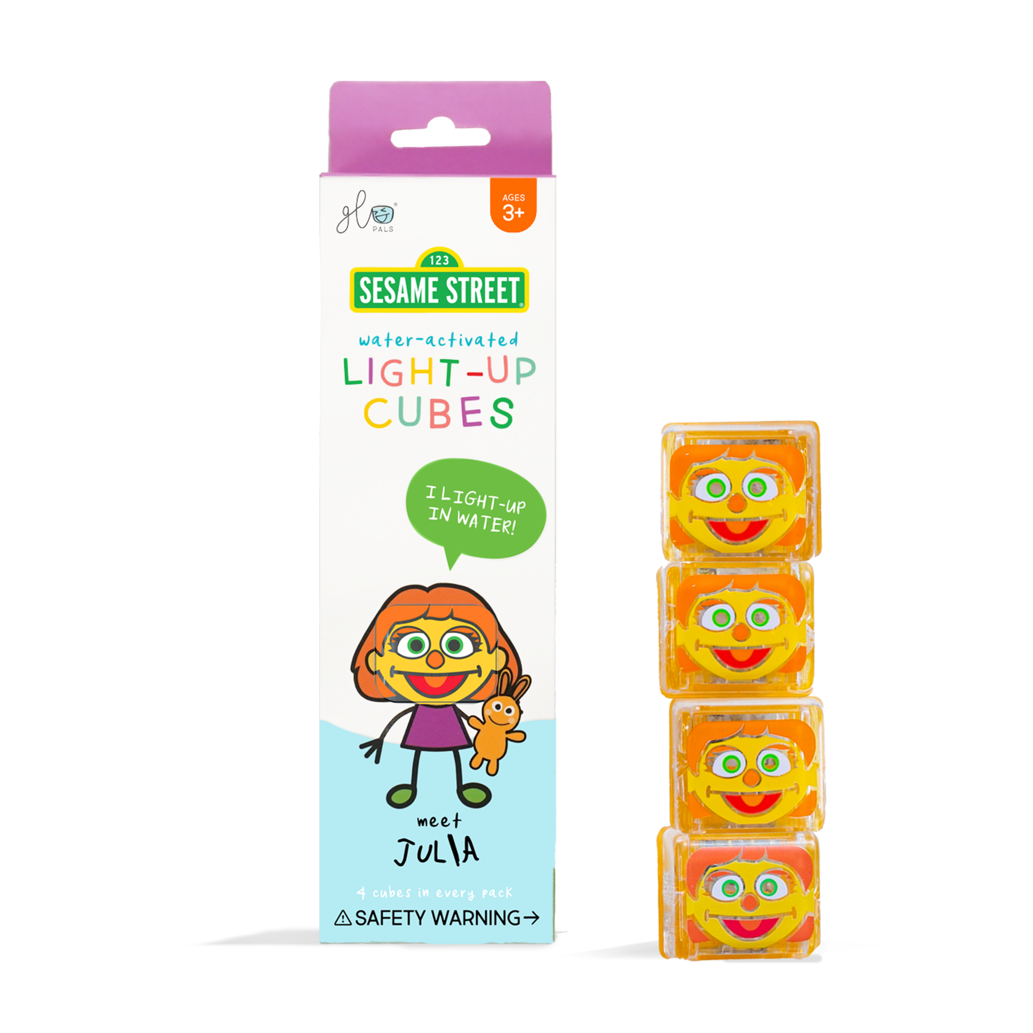 Gooi de cubes in het water en ze geven licht. Dit badspeelgoed is ontworpen door een mama met een kindje met autisme. Het kindje was bang voor water maar de cubes geven kindjes een ontspannen gevoel en zorgen voor zintuigelijk spel. Klaar met spelen in bad? Schud dan met het figuurtje om het te drogen.