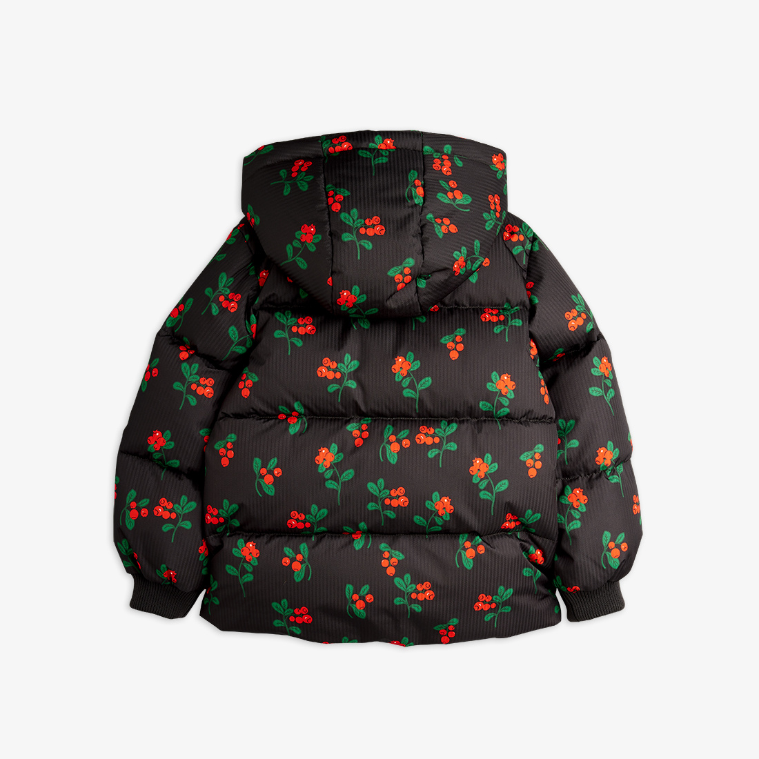 Lingonberries aop hooded puffer - Black