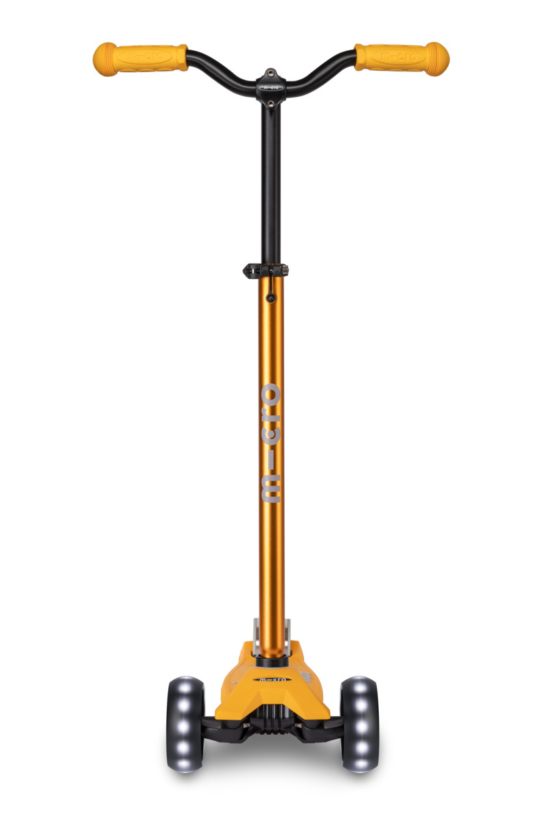 De Maxi Micro Deluxe Pro onderscheidt zich door zijn stoere brede wielen en brede stuur. Hierdoor is hij extra geschikt voor wat ruwer terrein. De Maxi Micro Deluxe step is ontwikkeld voor kinderen van 6-12 jaar. Deze hightech kinderstep heeft het unieke "lean-and-steer" stuurmechanisme waarmee je door de bochten surft. Je stuurt door je gewicht te verplaatsen, hetgeen een hoge fun factor heeft. Het Zwitsers ontwerp is veilig en stabiel door zijn dubbele voorwielen, lage fiberglass bord en stalen rem. De Maxi Deluxe step heeft bovendien siliconen belettering op het dek voor extra grip.