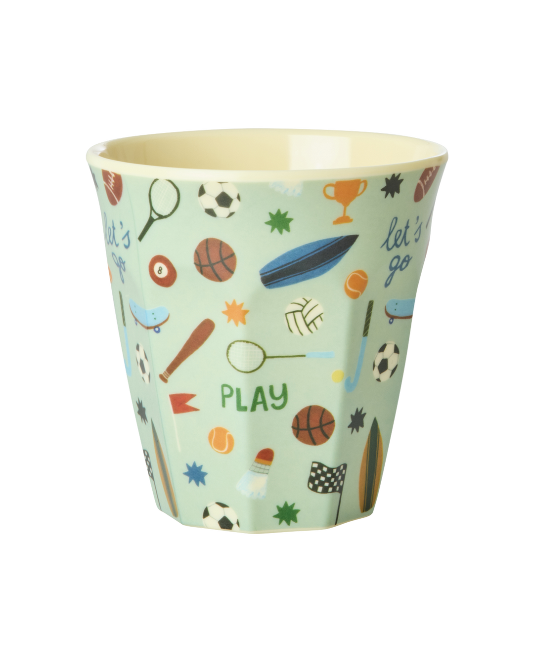 Medium melamine beker – Zachtgroen sports print