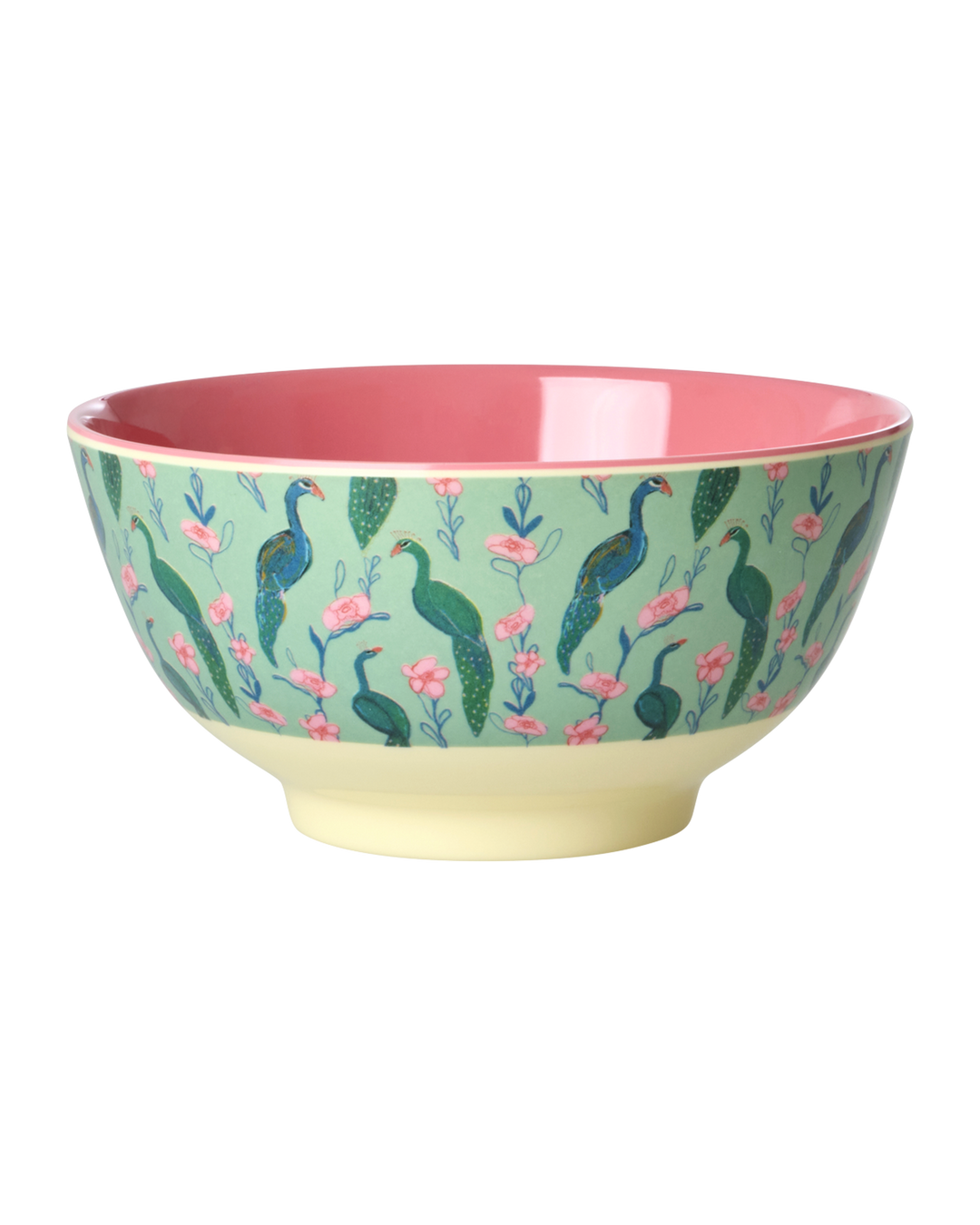 Mooi middelgroot kommetje met de vrolijke “Peacock Power” print - perfect voor het ontbijt, wat soep, of wat snoep! Het kommetje is gemaakt van melamine, wat duurzaam en ideaal voor dagelijks gebruik is, omdat het sterk en makkelijk schoon te maken is. Let op: het product is niet geschikt voor de magnetron.