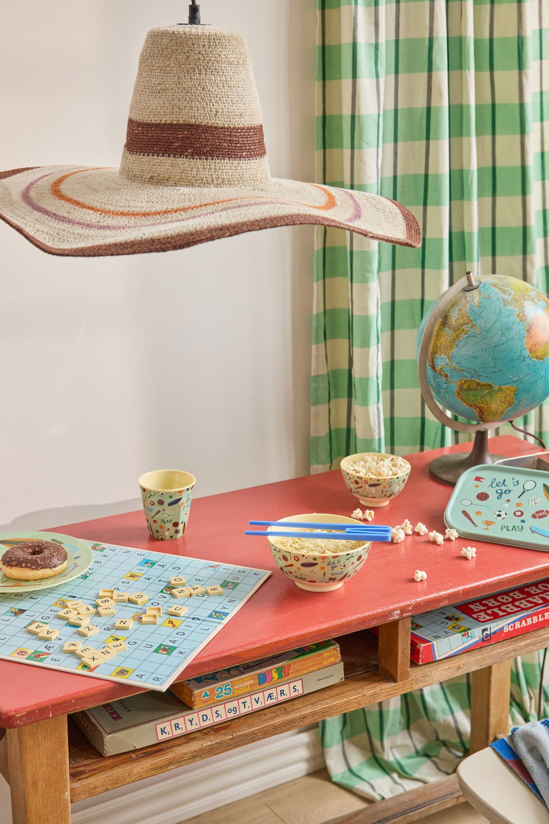 Geweldig leuk kommetje met basketballen, rackets en skateboards! Het kommetje is gemaakt van melamine, wat duurzaam en ideaal voor dagelijks gebruik is, omdat het sterk en makkelijk schoon te maken is. Het kommetje is perfect voor zowel groenten als snacks, maar niet geschikt voor de magnetron.