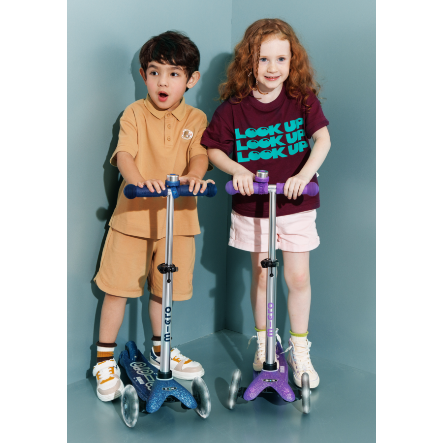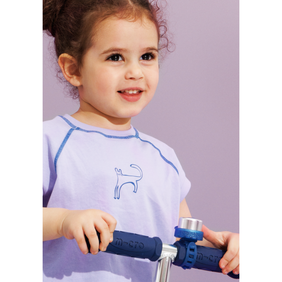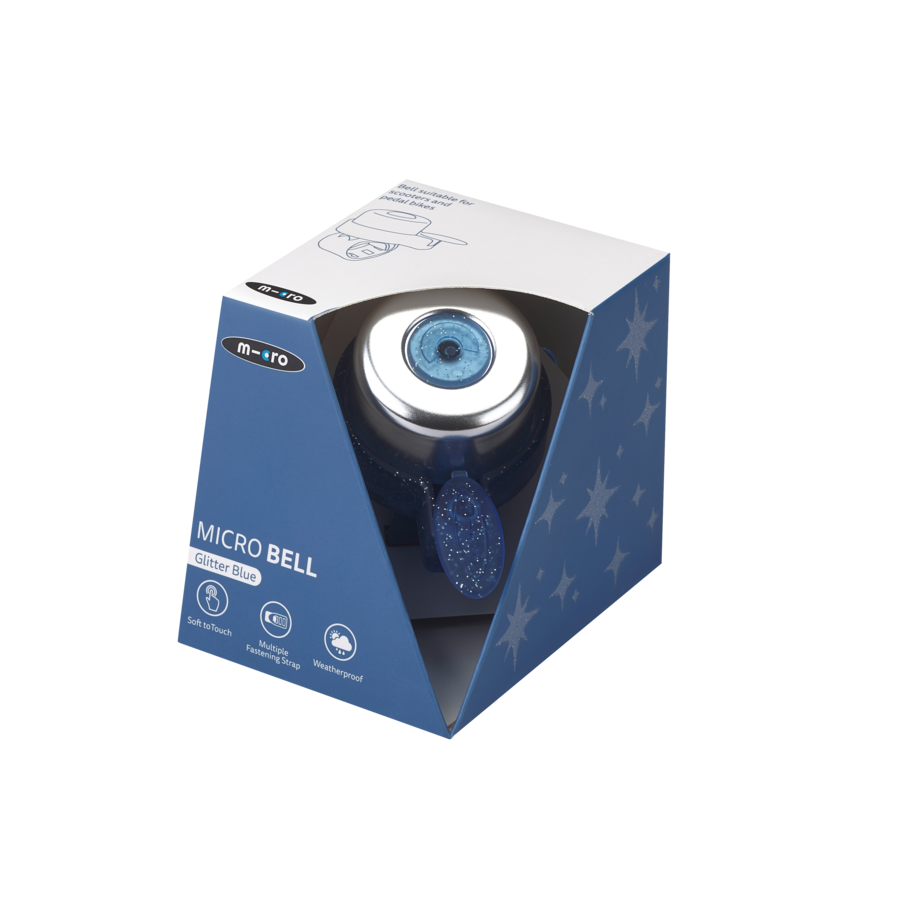De blauwe Micro Bel met glitters is een handig en veilig accessoire voor elke step en fiets. Deze weerbestendige bel is speciaal ontworpen om kinderen te helpen anderen te waarschuwen tijdens het steppen.