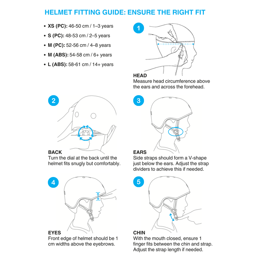 Gebruik de bijgevoegde fitting guide voor het kiezen van de correcte maat. Deze helm is verkrijgbaar in de volgende maten: