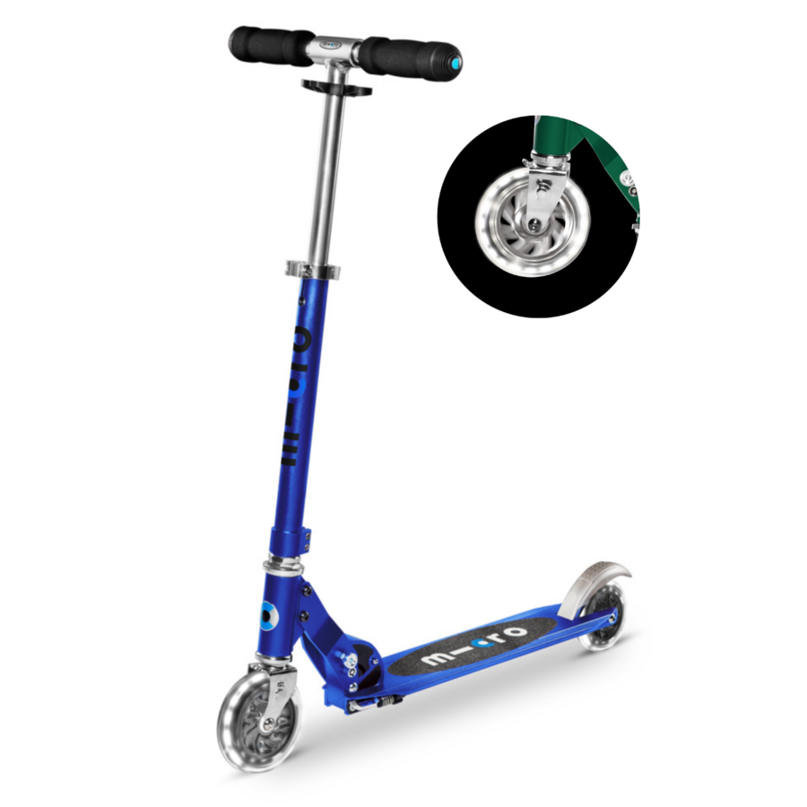 Onze best verkochte 2-wielige step wordt nu ook geleverd met LED-verlichting op de voor- en achterwielen. De slimme LED-technologie gebruikt inductie-energie om de kracht die kinderen creëren terwijl ze steppen. Geen batterijen. Geen gedoe. De wielen lichten wit op, om de donkerste avonden te verlichten en de meest gewone dagen op te fleuren. Kinderen vinden het geweldig. De Sprite stuurt als een fiets en rijdt nagenoeg geruisloos. Of het nu gaat om het opbouwen van snelheid of het nemen van obstakels, kinderen kunnen het gemakkelijk doen dankzij het slimme Zwitserse ontwerp van de Sprite. Met verstelbaar stuur voor jarenlang stepplezier en een lichtgewicht aluminium frame voor ultieme wendbaarheid en duurzaamheid. De voetplaat is van perfect formaat. Deze step munt uit door zijn eenvoud. Hij is veilig inklapbaar en heeft een handige standaard.