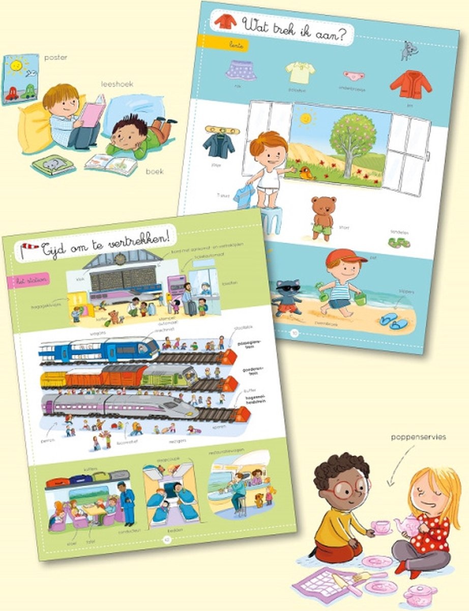 De vrolijke en gedetailleerde kijkplaten zullen je kind uitnodigen om dingen te benoemen en zo al spelend hun woordenschat uit te breiden over hun dag, hun activiteiten en de wereld rondom hen.