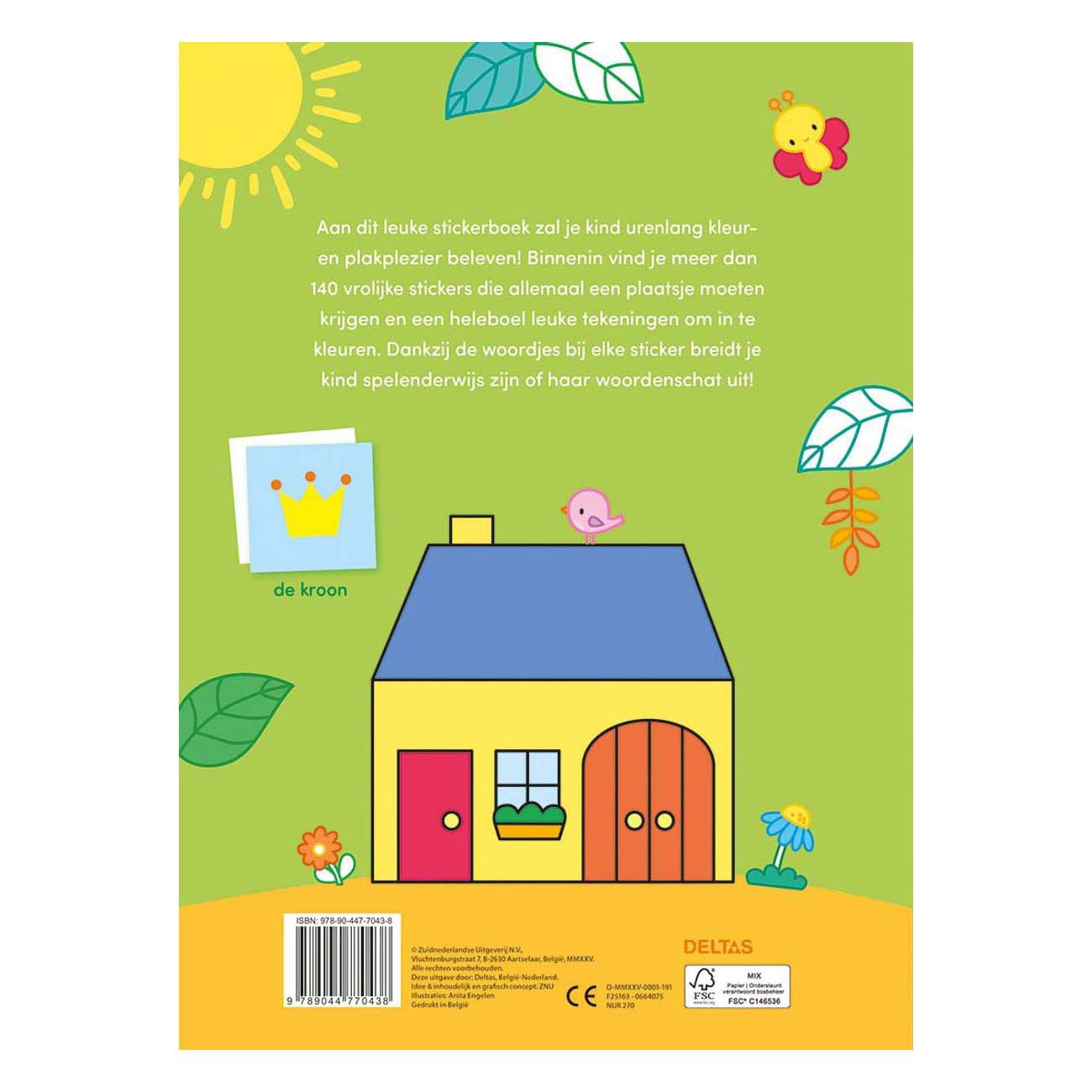 Aan dit leuke stickerboek zal je kind urenlang kleur- en plakplezier beleven! Binnenin vind je meer dan 140 vrolijke stickers die allemaal een plaatsje moeten krijgen en een heleboel leuke tekeningen om in te kleuren. Dankzij de woordjes bij elke sticker breidt je kind spelenderwijs zijn of haar woordenschat uit! \