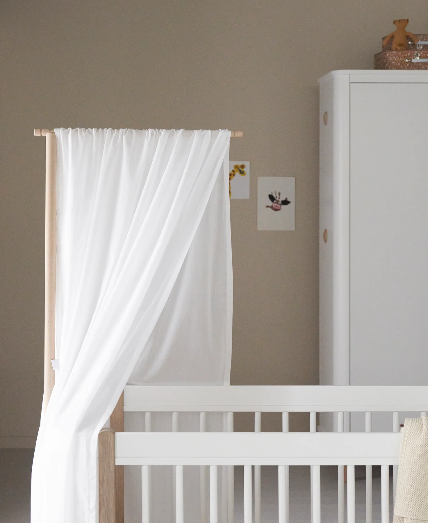 Deze canopy creëert een knusse omgeving en beschermt tegen tocht en fel licht. Het is gemaakt van 100% mousseline katoen en Oeko-Tex gecertificeerd. Het mag alleen gewassen worden met de hand.