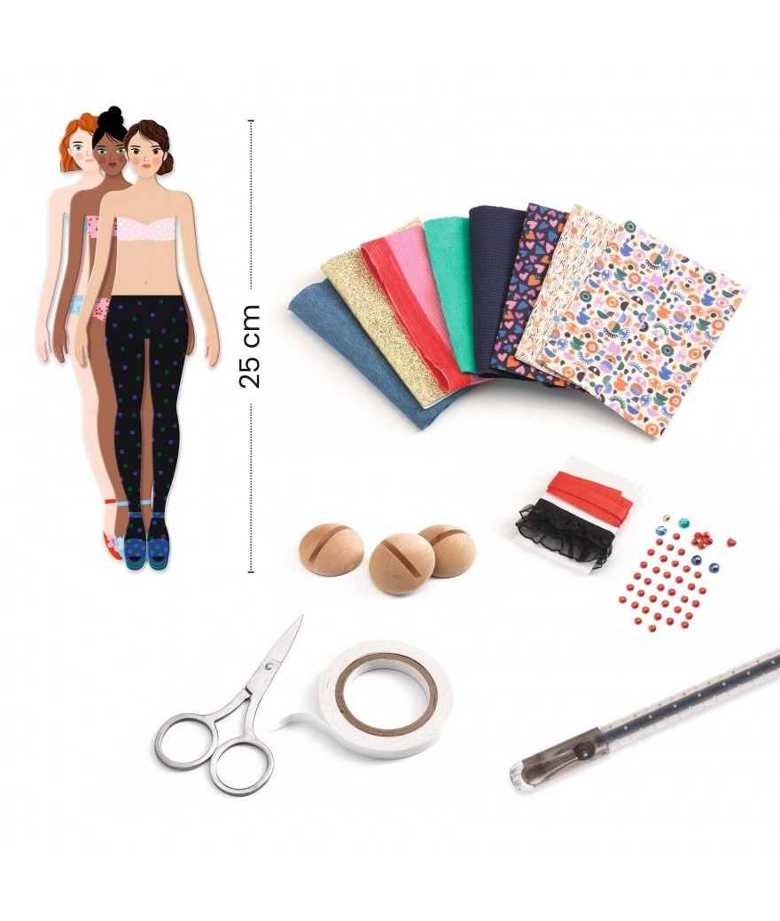 Een doos die aan alle verwachtingen van stylisten in spe voldoet! Dankzij de echte stof kan het kind zich laten leiden door de uitleg, de patronen volgen en de elementen vervolgens op eenvoudige manier in elkaar te zetten, zonder te moeten naaien. Het kind moet enkel nog de outfits voorzien van verschillende accessoires en kan vervolgens zijn modellen tentoon stellen op de poppen die rechtop blijven staan!
