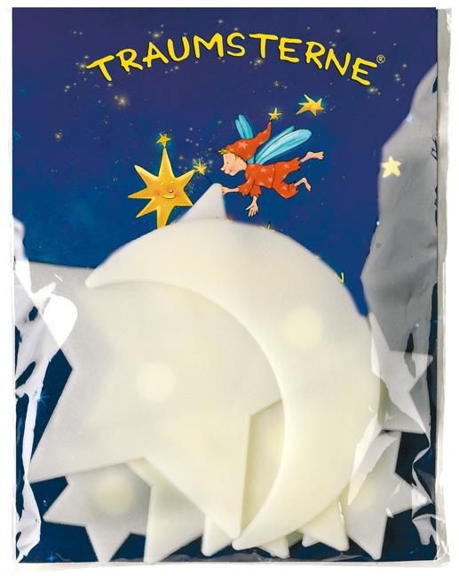 Leuke glow in the dark sterren Inhoud: 2 grote sterren (9 cm doorsnede), 2 middelgrote sterre (6 cm doorsnede), 4 kleine sterren (4 cm doorsnede) en 1 grote maan (8,5 cm).Allemaal zijn ze voorzien van een plakker, leuk om een kinder slaapkamer mee te versieren. In handige tafeldisplay. Nieuw design, gemaakt in Duitsland.