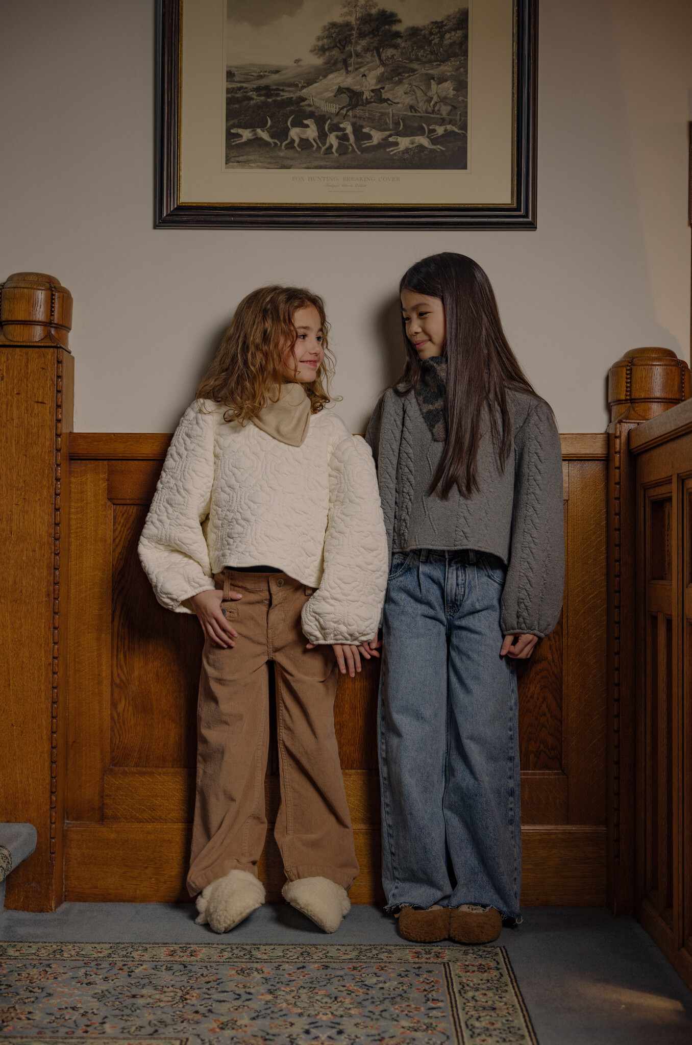 Materiaal: 65% katoen, 25% polyester, 9% gerecycled polyester, 1% elastaan
