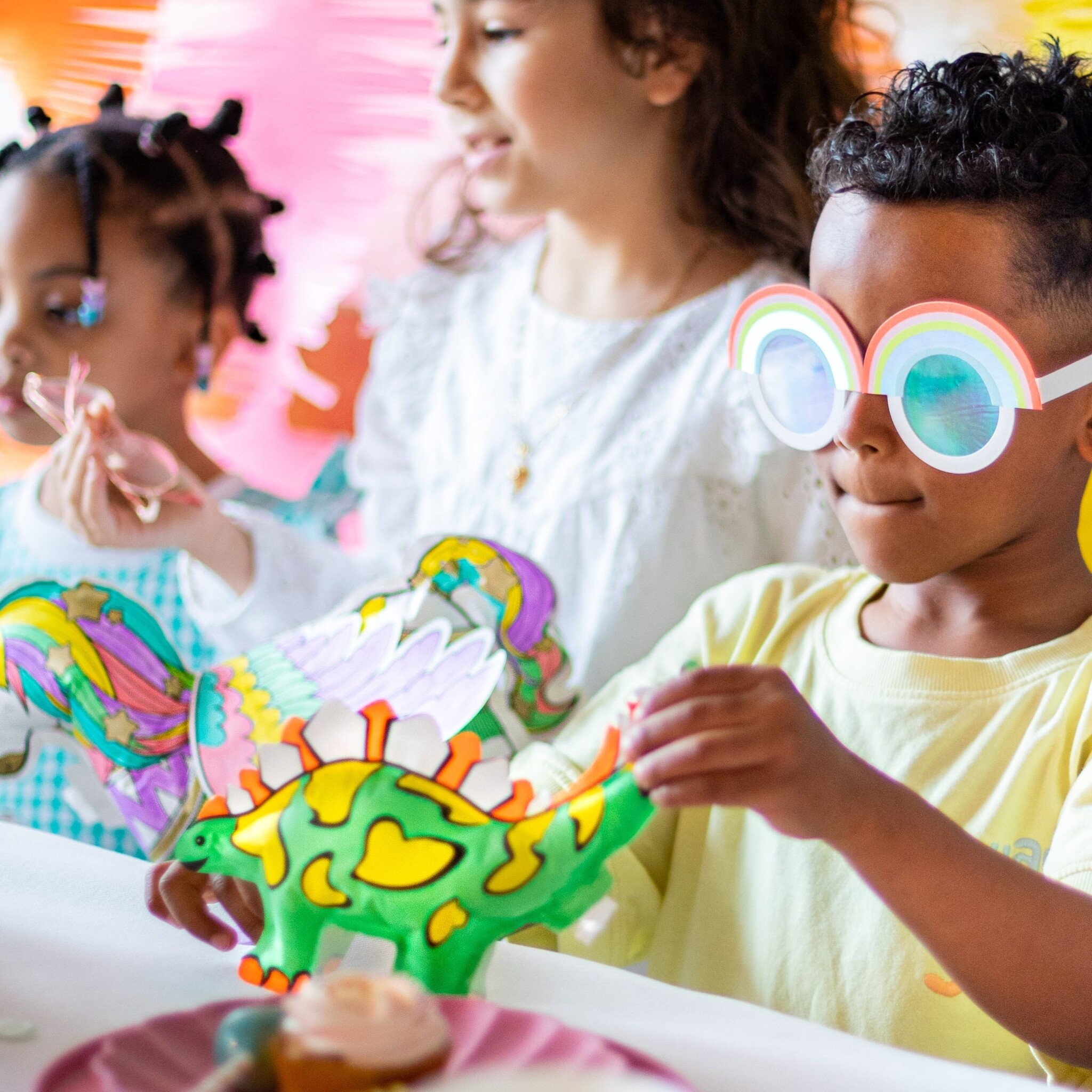 Geef kids een onvergetelijk verjaardagsfeestje met het Dino opblaasbare kleurplaten set, waarin spel en prehistorisch avontuur samenkomen voor een dag vol energie en gelach!