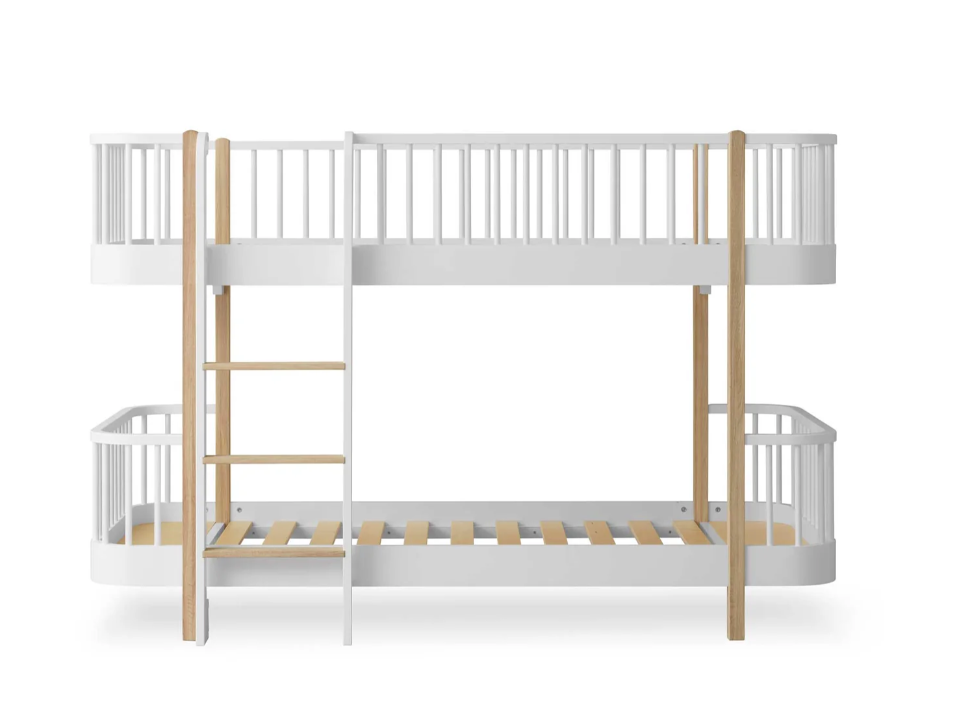 Het lage stapelbed geeft ruimte aan twee eenpersoonsbedden, maar neemt in de hoogte minder ruimte in beslag dan een regulier stapelbed. Zo kunnen broers en zussen samen een kamer delen! De lage hoogte is ideaal voor jongere kinderen; het is niet ver voor het kind. om naar boven te klimmen en ouders kussen vanaf de zijkant van het bed nog fijn welterusten wensen.