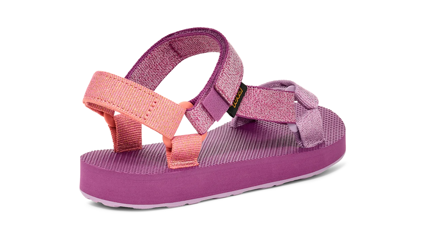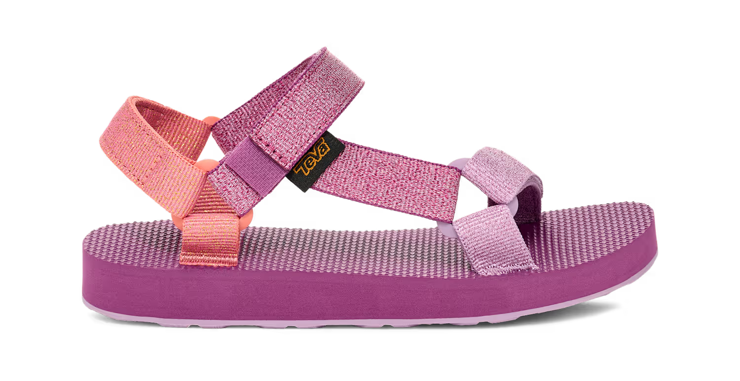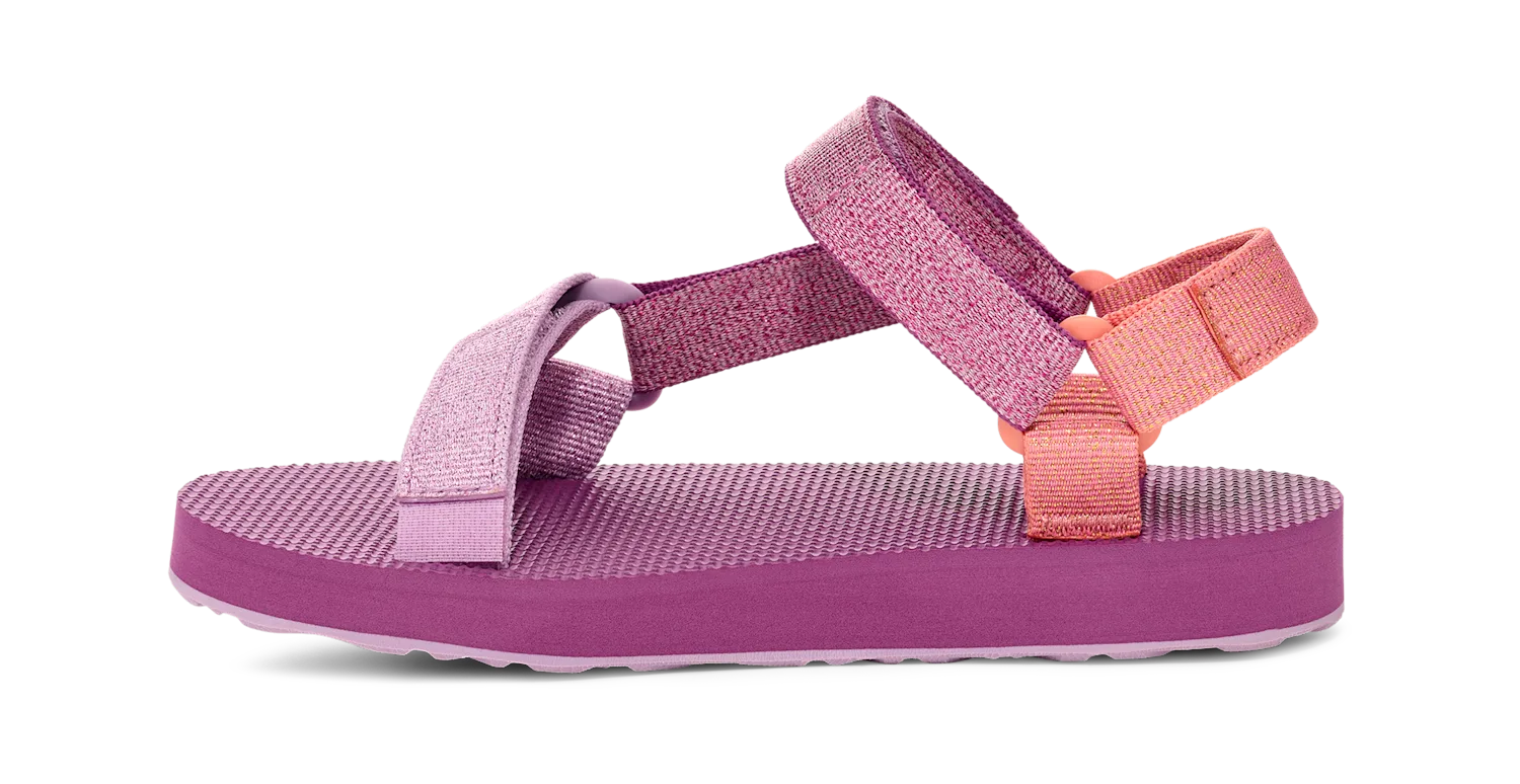 Deze glinsterende zomeressential geeft een frisse draai aan de klassieke Original Universal en heeft metallic bandjes met grote kleurvlakken die kleine teentjes laten stralen. Deze milieuvriendelijke kindersandaal is zowel geschikt voor op de camping als in de speeltuin en heeft bandjes van REPREVE®-polyester, die gemaakt zijn van gerecycled plastic.