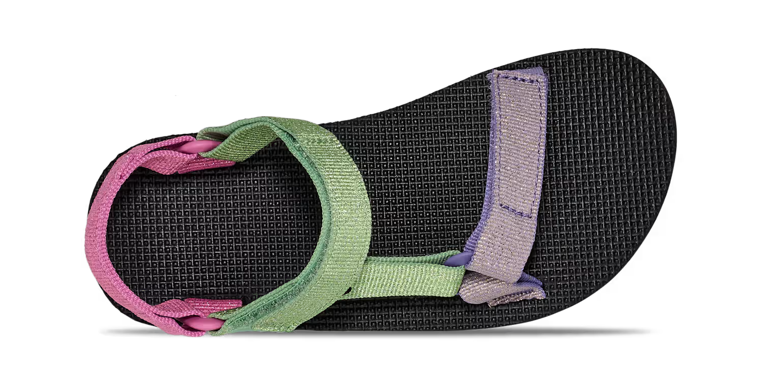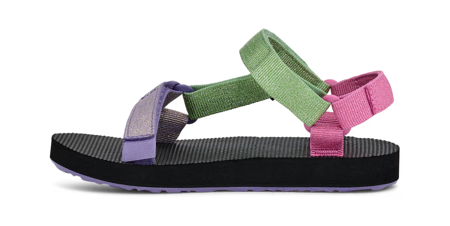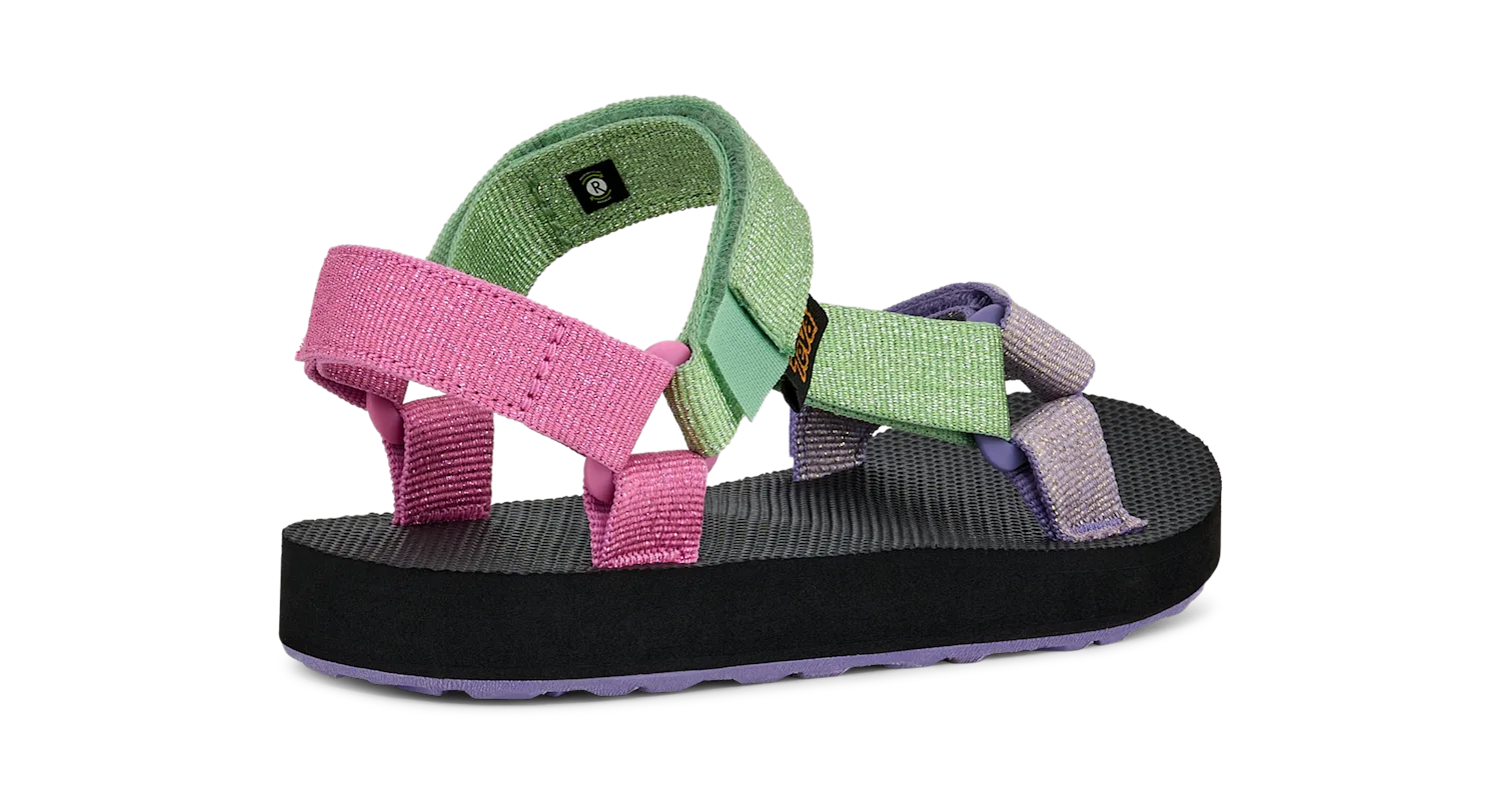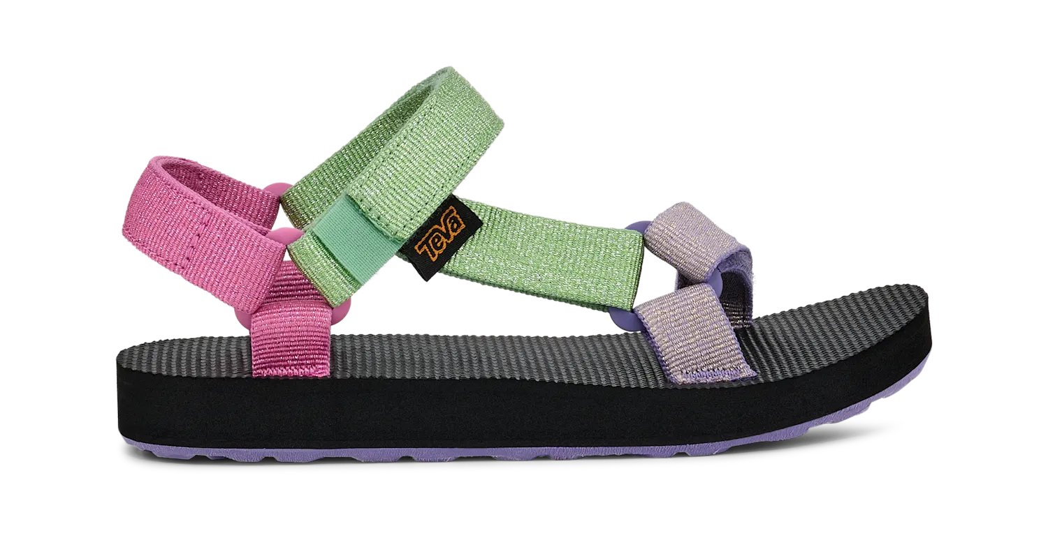 Deze glinsterende zomeressential geeft een frisse draai aan de klassieke Original Universal en heeft metallic bandjes met grote kleurvlakken die kleine teentjes laten stralen. Deze milieuvriendelijke kindersandaal is zowel geschikt voor op de camping als in de speeltuin en heeft bandjes van REPREVE®-polyester, die gemaakt zijn van gerecycled plastic.