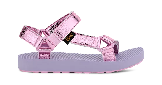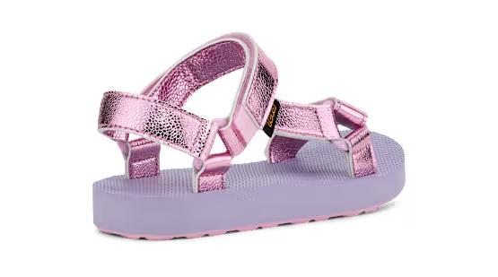 Geïnspireerd op de iconische Original Universal, maar met een glanzende twist: deze vrolijke kindersandaal combineert een speelse look met dezelfde praktische eigenschappen als de volwassen versie. Dankzij het slimme ontwerp is de sandaal geschikt voor zowel natte als droge omstandigheden. Het zachte voetbed en de comfortabele zool zorgen ervoor dat kinderen moeiteloos de hele dag op pad kunnen - van het strand tot de stoep en alles daartussenin.