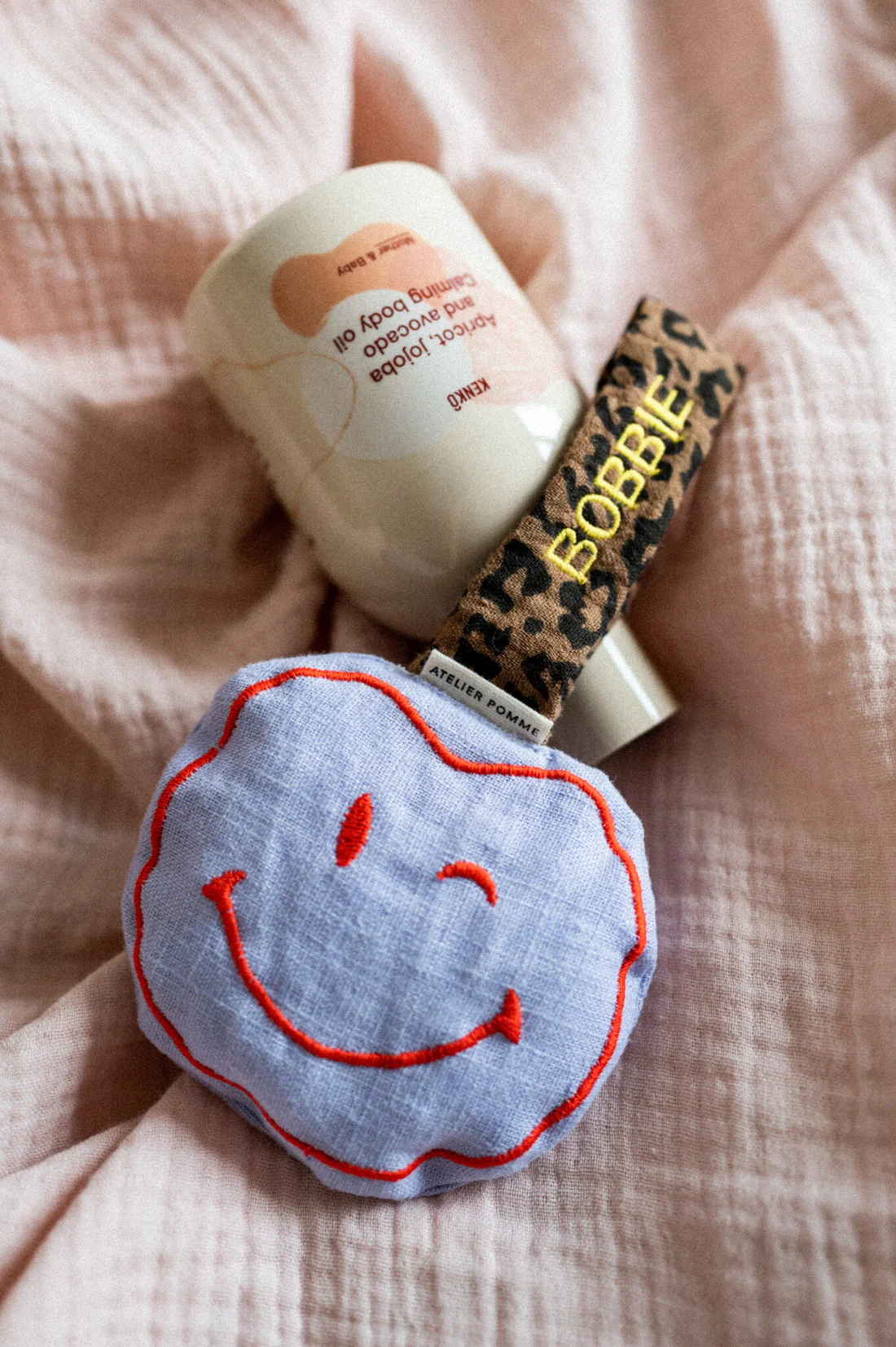 Hi, mini favorite! De schattige appel is de POMME CUDDLE, een lieve smiley die de speen van je kleintje bewaakt. De knuffel is gemaakt van zacht linnen en heeft een koordje waaraan je een speen kunt bevestigen. POMME CUDDLE knuffelt ook graag met je baby. POMME is verkrijgbaar in verschillende vrolijke kleuren met een schattige print op de achterkant!