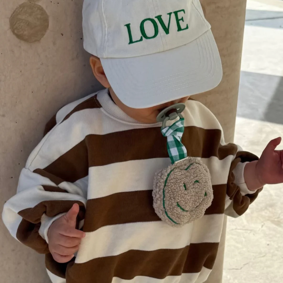 Hi, mini favorite! De schattige appel is de POMME CUDDLE, een lieve smiley die de speen van je kleintje bewaakt. De knuffel is gemaakt van superzachte mousseline en heeft een koordje waaraan je een speen kunt bevestigen. POMME CUDDLE knuffelt ook graag met je baby. POMME is verkrijgbaar in verschillende vrolijke kleuren met een schattige print op de achterkant!