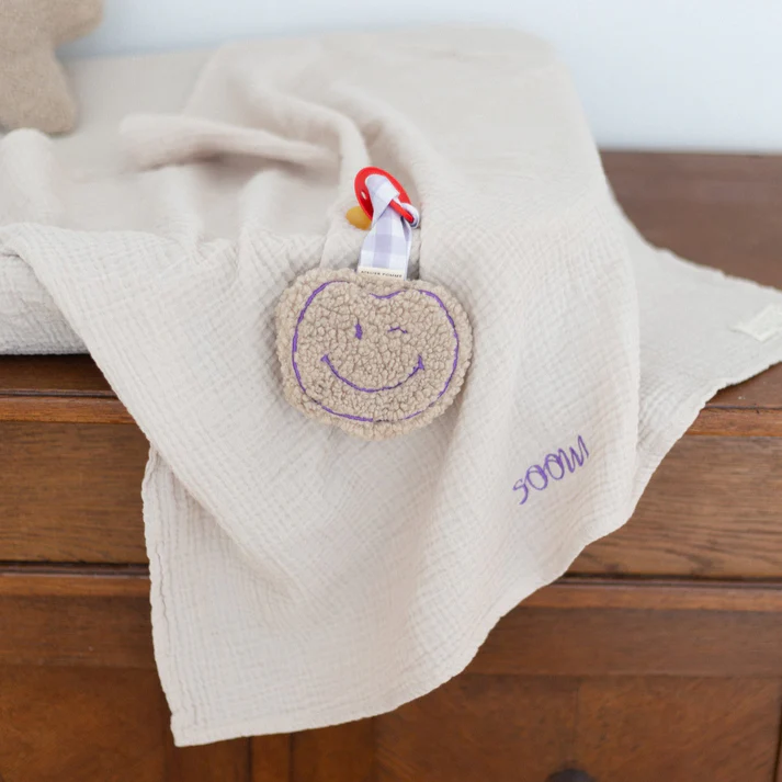Hi, mini favorite! De schattige appel is de POMME CUDDLE, een lieve smiley die de speen van je kleintje bewaakt. De knuffel is gemaakt van superzachte mousseline en heeft een koordje waaraan je een speen kunt bevestigen. POMME CUDDLE knuffelt ook graag met je baby. POMME is verkrijgbaar in verschillende vrolijke kleuren met een schattige print op de achterkant!