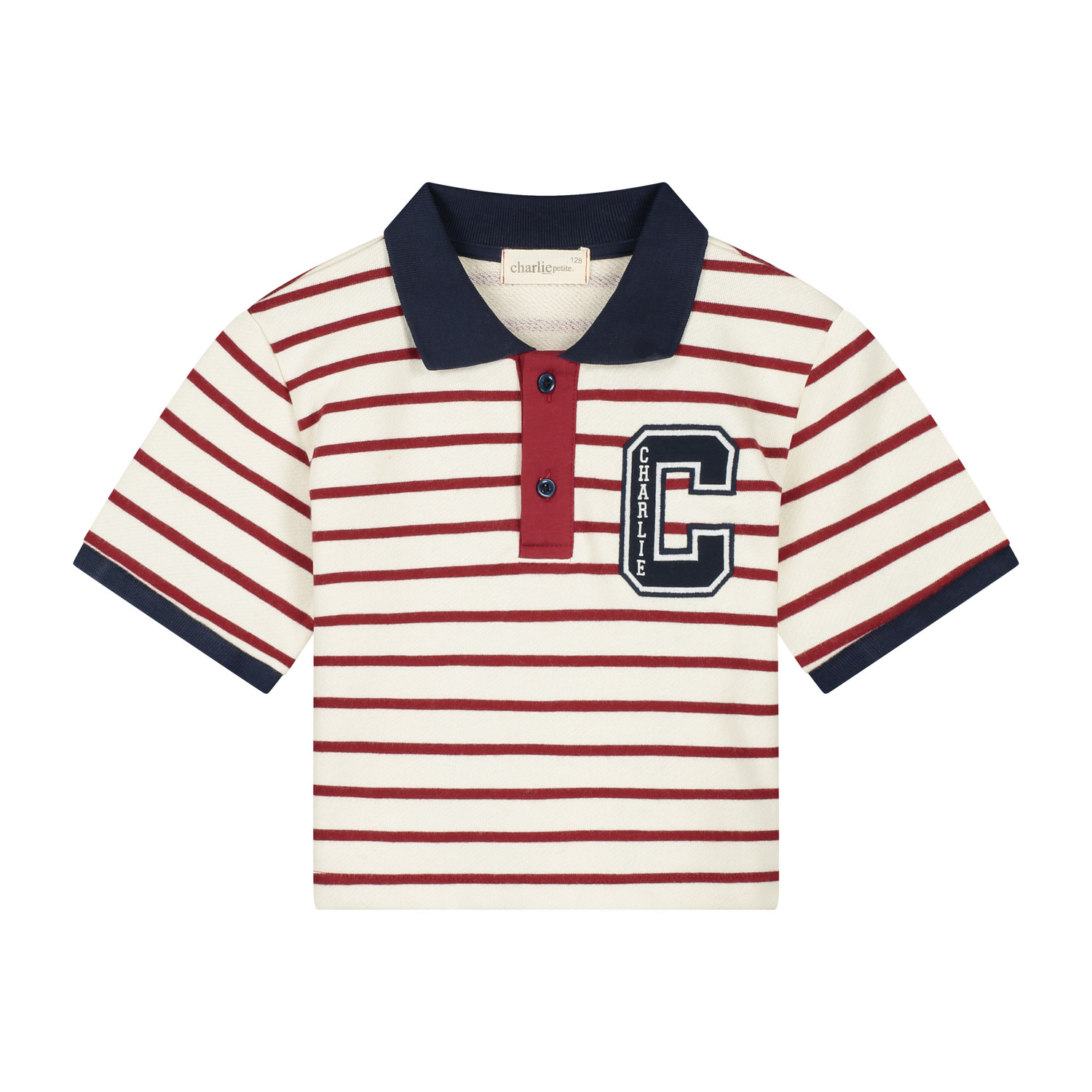 Pam cropped polo t-shirt - Stripes bordeaux/navy/ecru