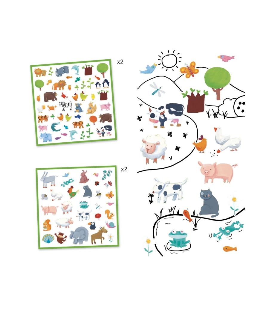 Een boekje met 160 stickers over het thema dieren. Leeuwen, beren, olifanten, vogels... Je vindt ze er allemaal! De kinderen kunnen de vele stickers naar wens plakken om hun eigen taferelen samen te stellen of om wat dan ook te versieren!