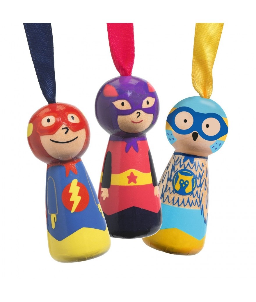 De Flying Heroes zijn kleine parachutisten van hout die je kan lanceren en zo lang mogelijk door de lucht kan laten zweven. Super Flash, Super Cat en Super Chouette worden apart verkocht in mooie doosjes. Een klassiek speeltje, maar dan in een eigentijdse versie.