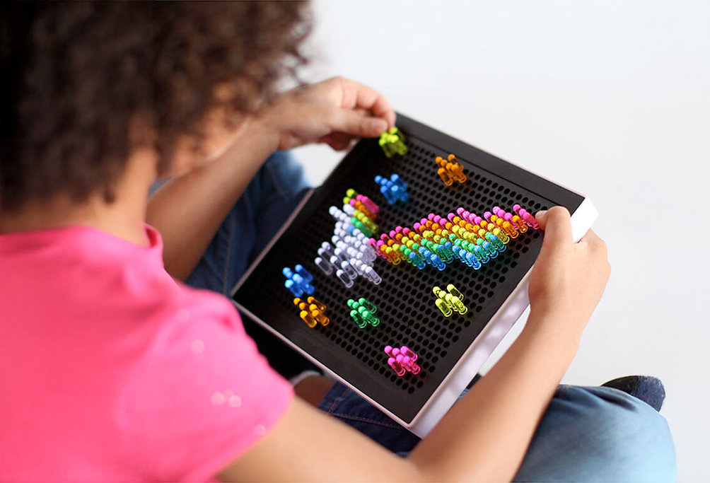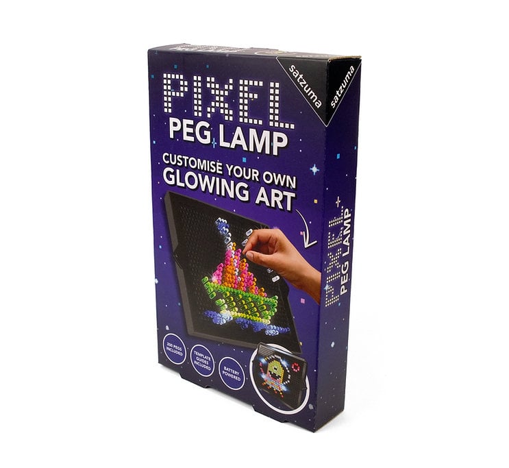 Laat je creativiteit stralen met de Pixel Peg Lamp van Satzuma. Deze kleurrijke LED-lamp is een interactieve lichtbord waarmee je je eigen ontwerpen kunt maken door gekleurde pinnetjes in het verlichte bord te steken. Perfect voor het personaliseren van je kamer met je eigen lichtkunst.