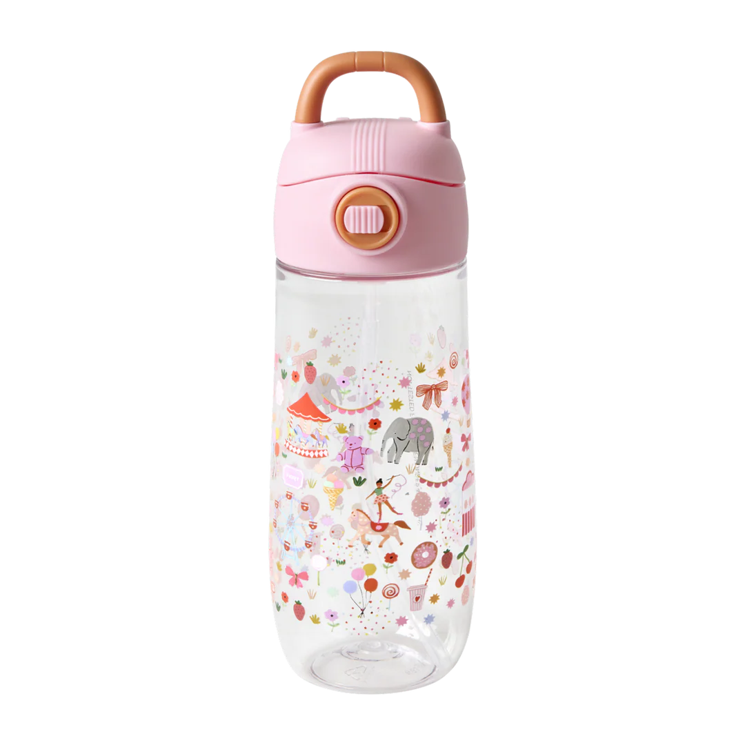 Dorstig onderweg? Met deze leuke kinderdrinkfles met roze "Fun Fair"-print neem je gemakkelijk iets te drinken mee voor onderweg... Makkelijk te gebruiken voor kleine vingertjes. En om het nog makkelijker te maken, kun je de hele drinkfles in de vaatwasser doen als hij schoon moet worden. De inhoud is 550 ml.