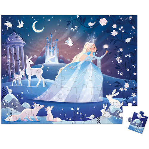 Kartonnen puzzel van 54 stukjes met de magie van het ijs als thema. Poster inbegrepen. Wordt verkocht in een mooie geschenkdoos met een stoffen handvat. Afmeting puzzel: 50x40 cm. Geschikt voor kinderen vanaf 5 jaar.