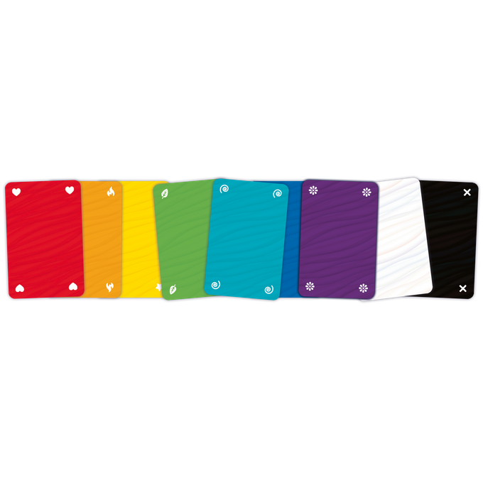 Maak regenbogen van 6 verschillende kleuren. Gebruik hiervoor jouw kaarten… of de achterkant van de kaarten van je tegenspeler! Je weet in het begin niet wat voor achterkanten jouw kaarten hebben. Door goed alle kaarten te onthouden kun je de meeste regenbogen creëren. Maar pas op! Een dubbele kleur of een zwarte kaart zorgt ervoor dat je direct kaarten aan je tegenspeler moet geven.