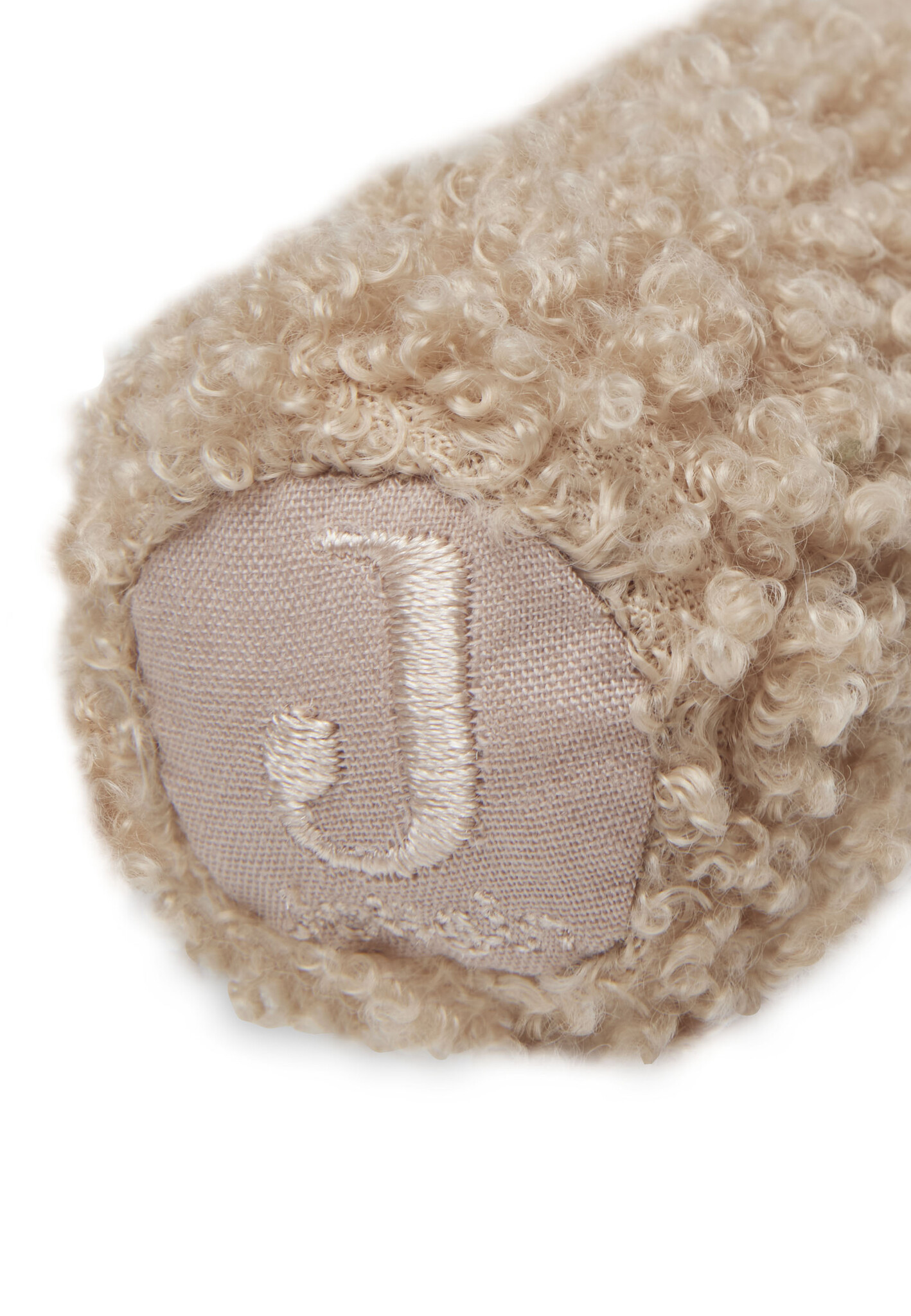 Deze rammelaar van zachte bouclé is makkelijk te pakken en vast te houden. Het is niet erg als je kindje het na het grijpen ook weer laat vallen. De zachte rammelaar zal jouw baby niet bezeren. Super handig oefenmateriaal dus.