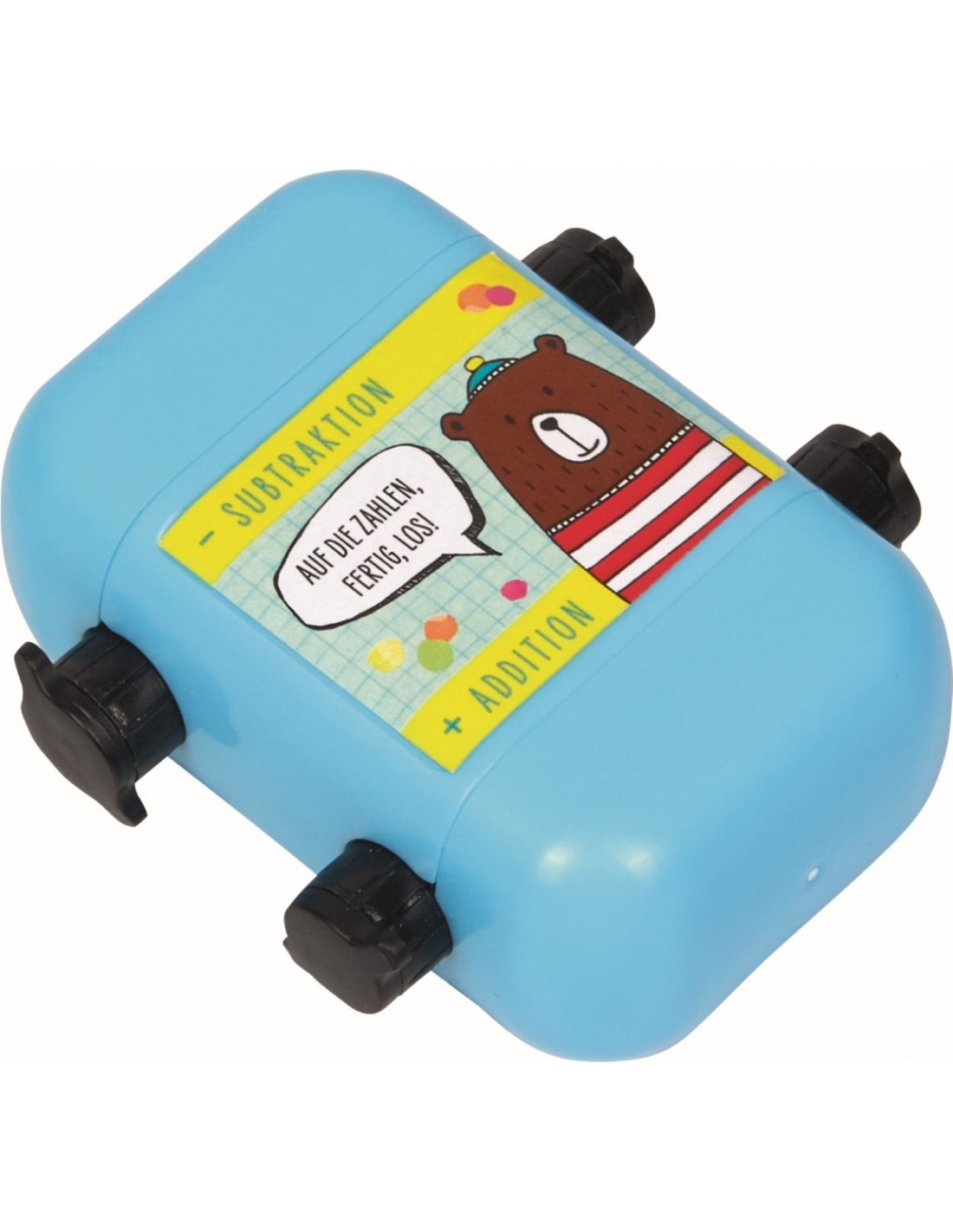 - Gebruik: verwijder de dop, stel de getallen in met de wielen, rol uit en begin met rekenen. Herhaal voor héél veel rekenplezier.