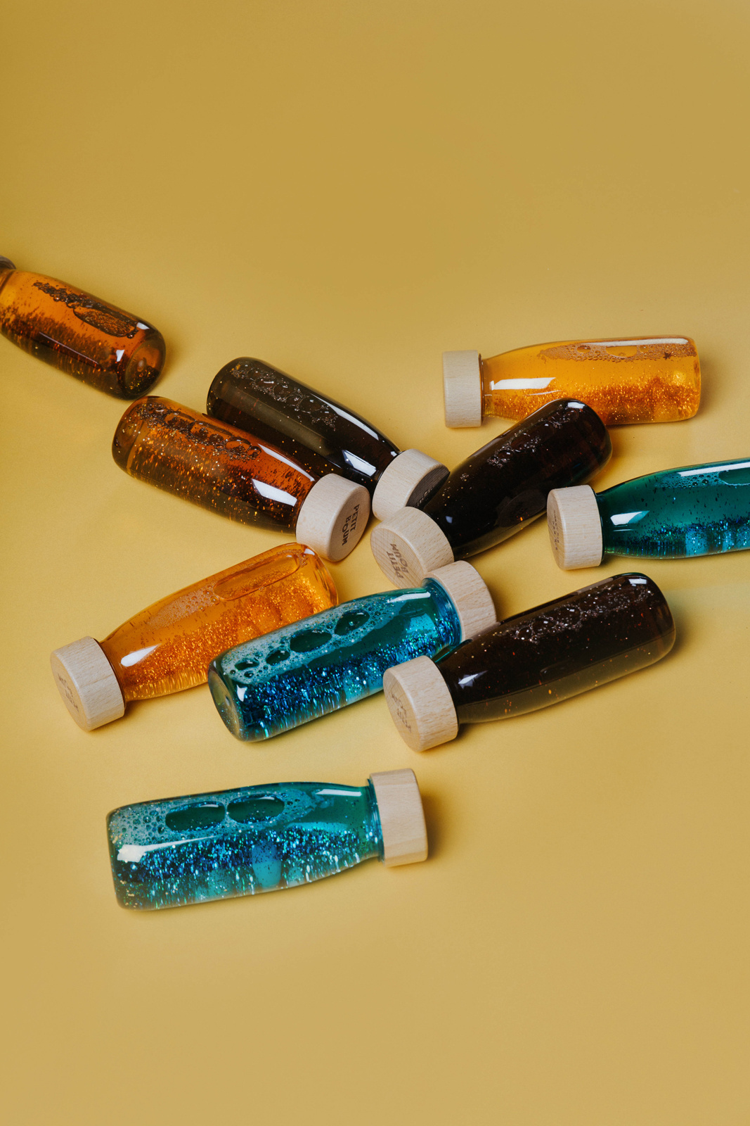 De regenboog binnen handbereik. Concentratie. Ontspanning. Emoties. Stimuleer zicht. Stimuleer aanraking. Handmatige oogcoördinatie. Petit Boum pakte de kleuren van de regenboog één voor één op om deze magische flessen te maken. Zwaai en observeer ze om een rustige, ontspannende wereld binnen te gaan en je fantasie de vrije loop te laten! Ideeën voor spellen: 1. Observeer de elementen 2. Stapel flessen. 3. Rol de fles.