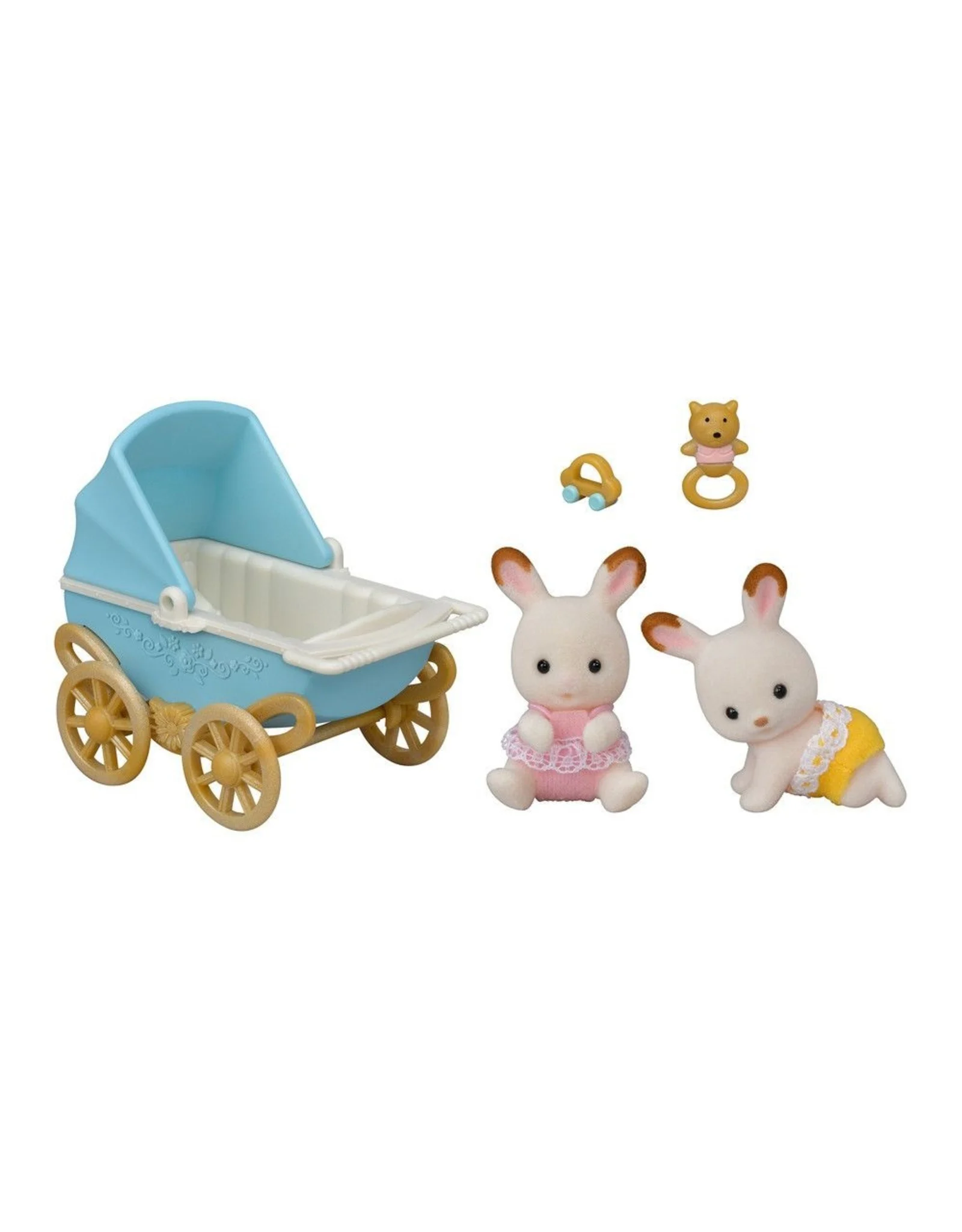 Simon en Sophie Chocoladekonijn vinden het heerlijk om vooruit geduwd te worden door het weiland in hun prachtige dubbele kinderwagen. En als ze ondeugend worden, heb je speelgoed om ze vrolijk te houden!