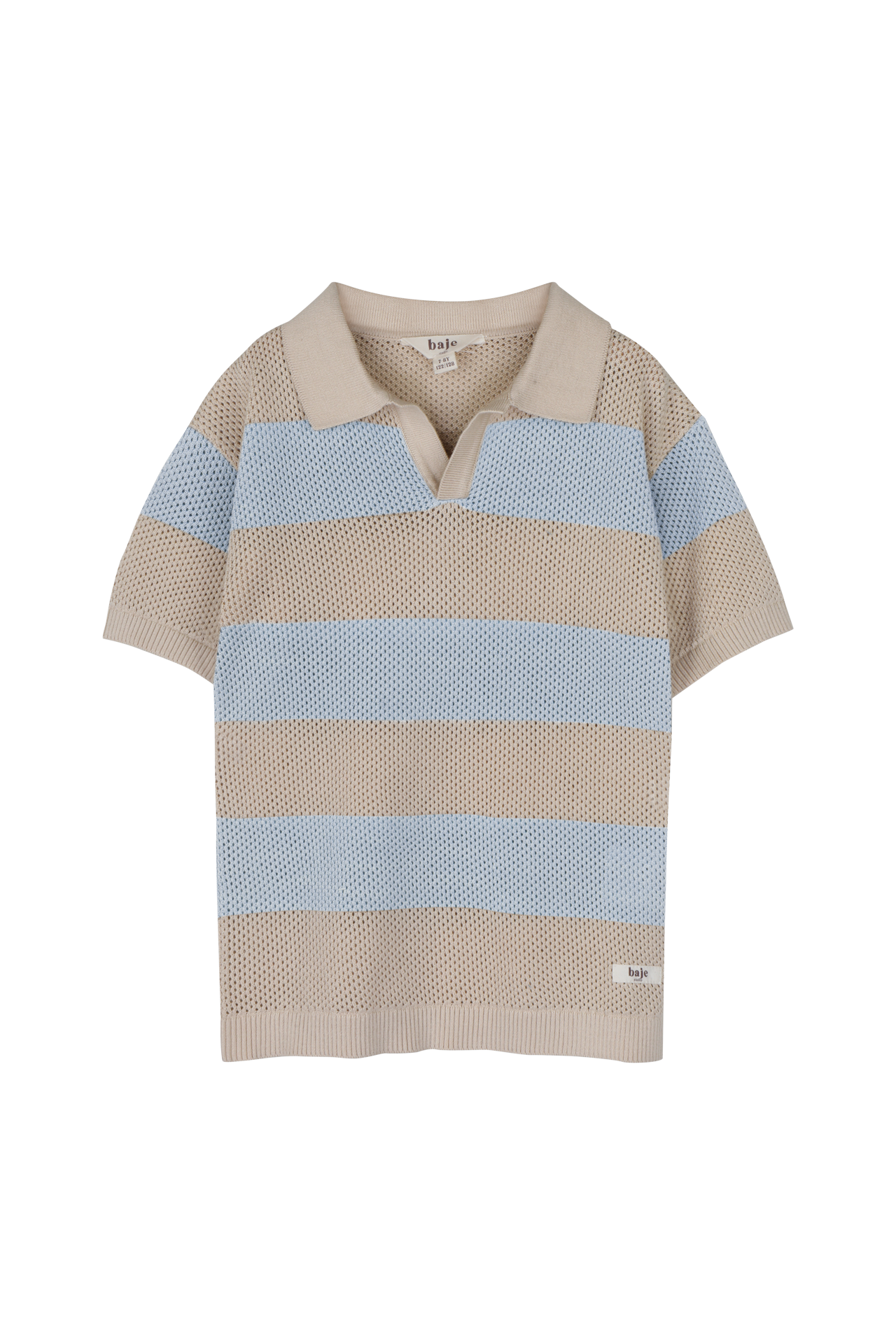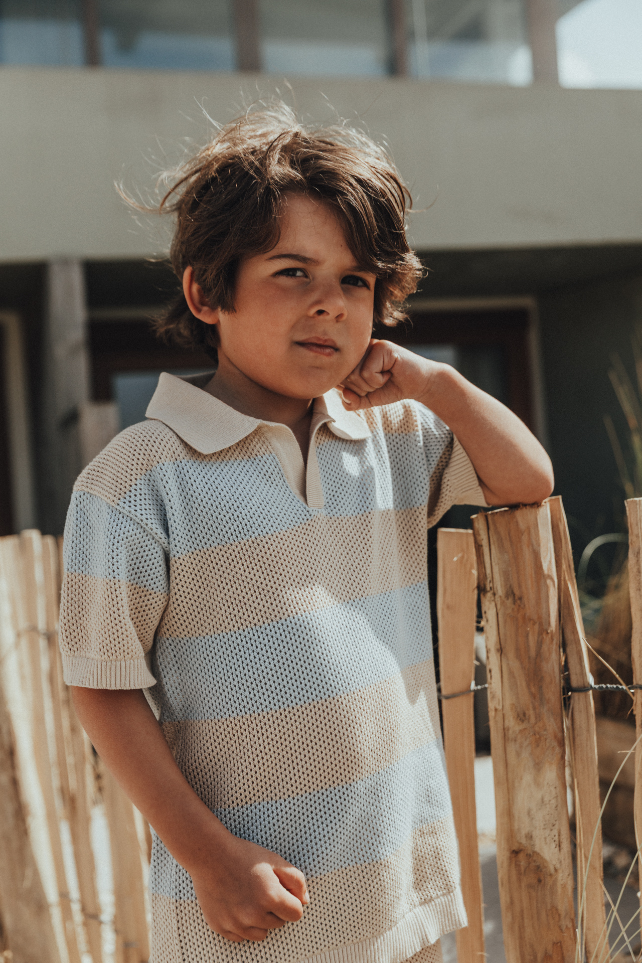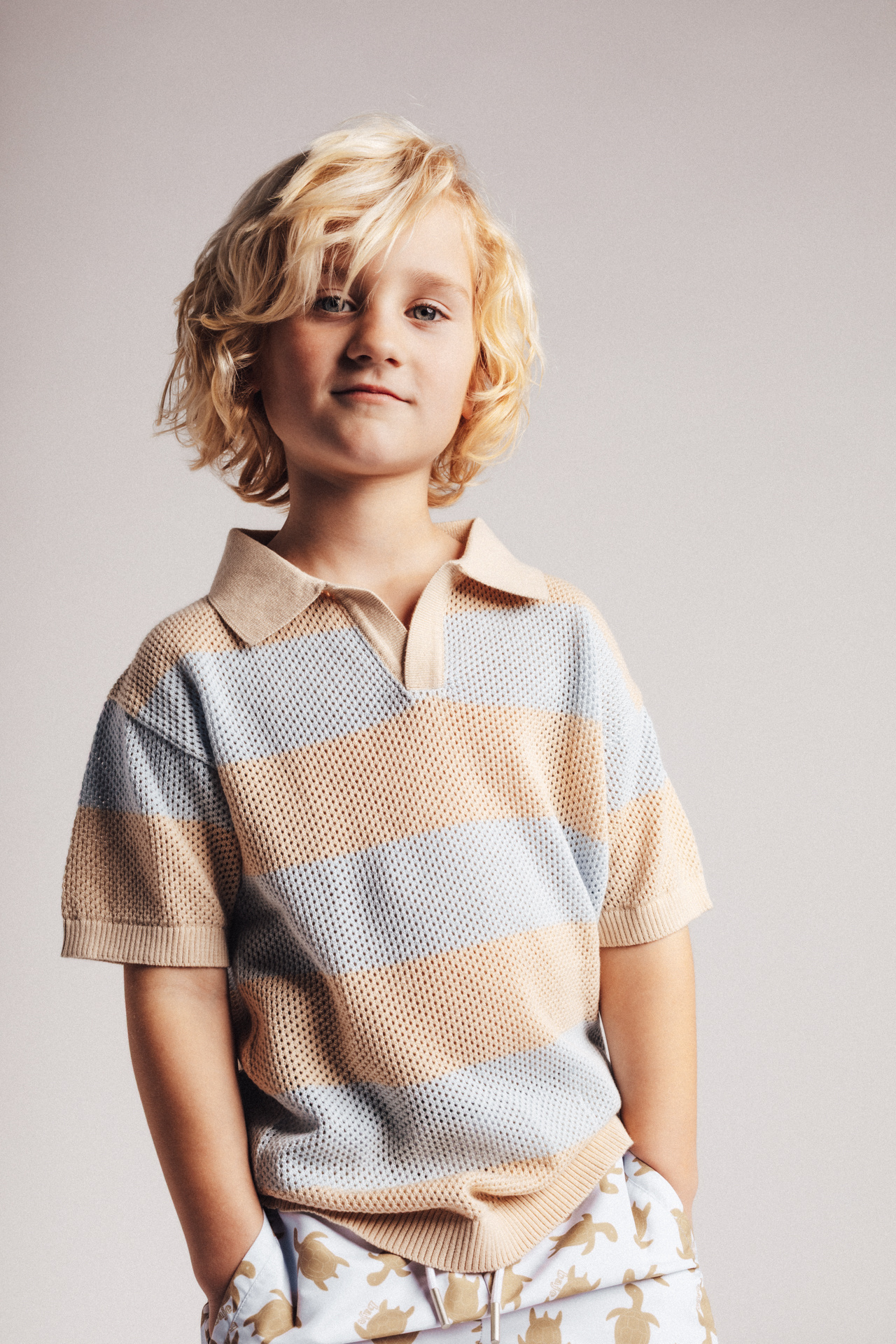 Luchtige gebreide polo top met een subtiel streeppatroon en kraagdetail. De zachte, ademende stof en relaxte fit maken deze top perfect voor warme dagen.