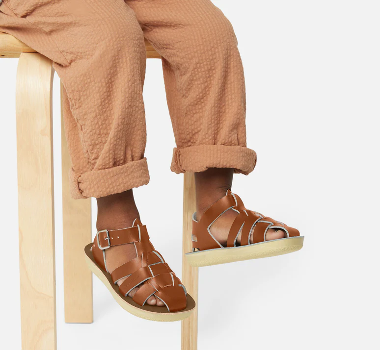 Zoals bij alle Salt-Waters kunnen deze geweven leren sandalen met open neus in het water worden gedragen. Ze zijn voorzien van roestvrije gespen, een duurzame rubberen zool en een verstelbaar enkelbandje.
