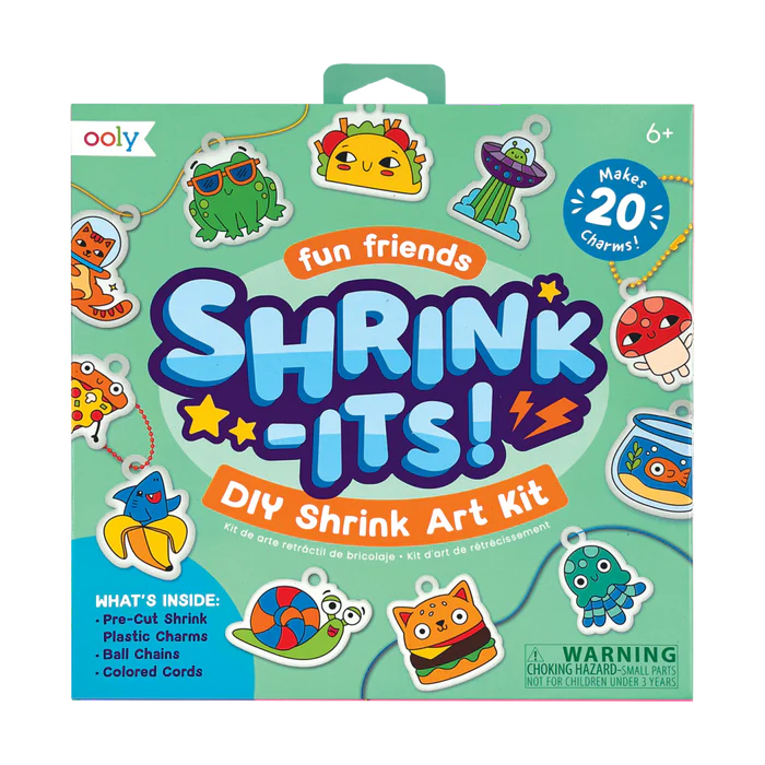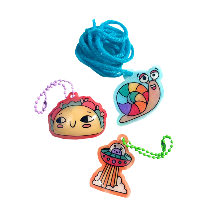Maak van een saaie middag een leuke tijd met dit krimpkunstpakket! Het bevat 20 eigenzinnige bedeltjes, drie verschillend gekleurde koorden en vijf verschillend gekleurde bolletjeskettingen.Deze bedels zijn gemaakt van lichtgewicht plastic en zijn perfect om aan een rugzak of sleutelhanger te hangen!