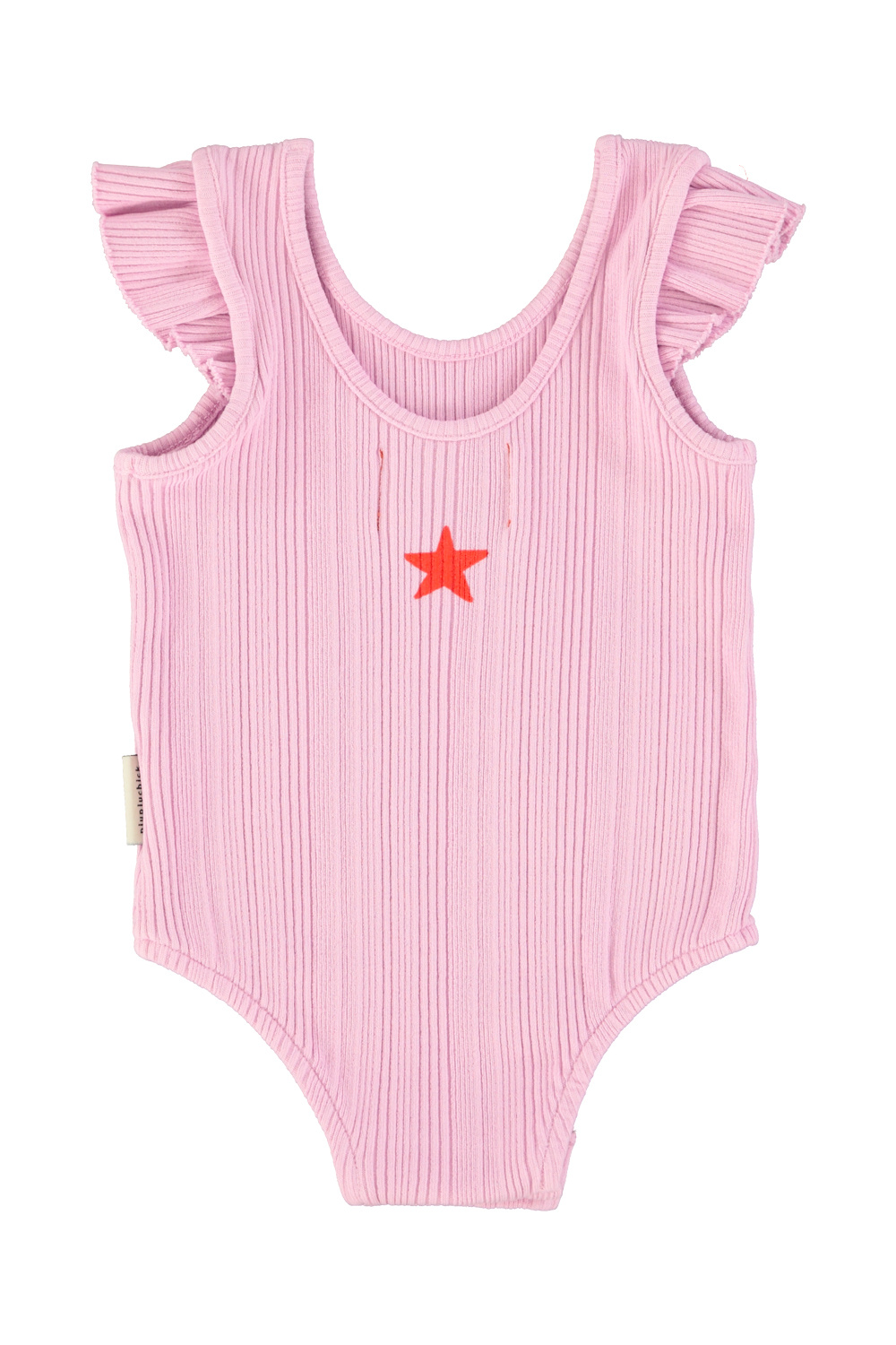 Baby romper w/ ruffles - Pink w/ black hearts allover