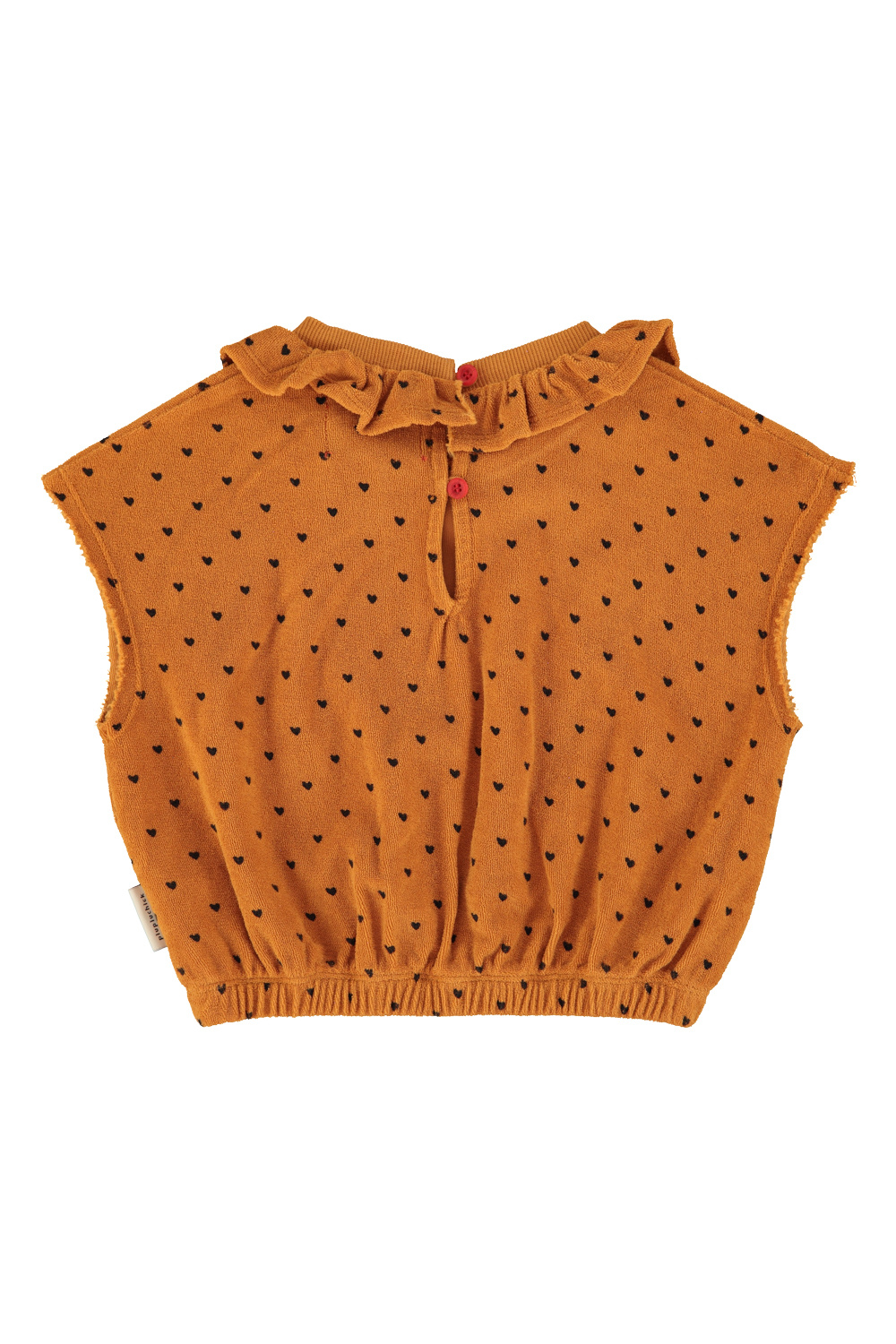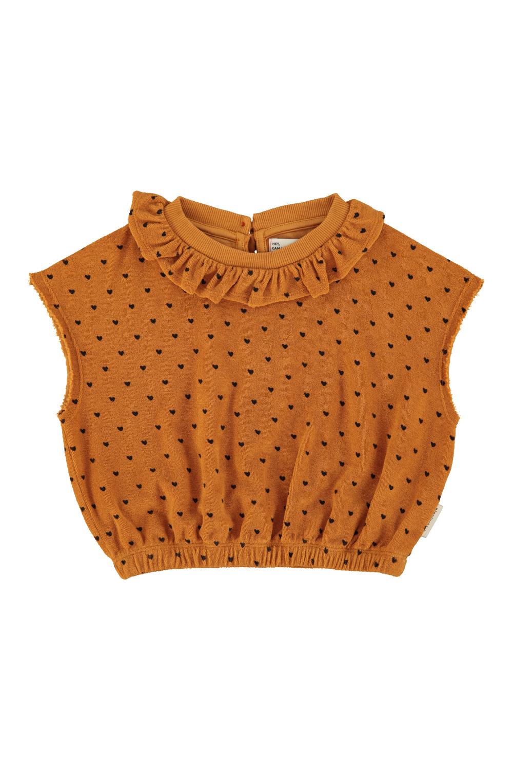 Sleeveless top w/ collar - Camel w/ black hearts allover