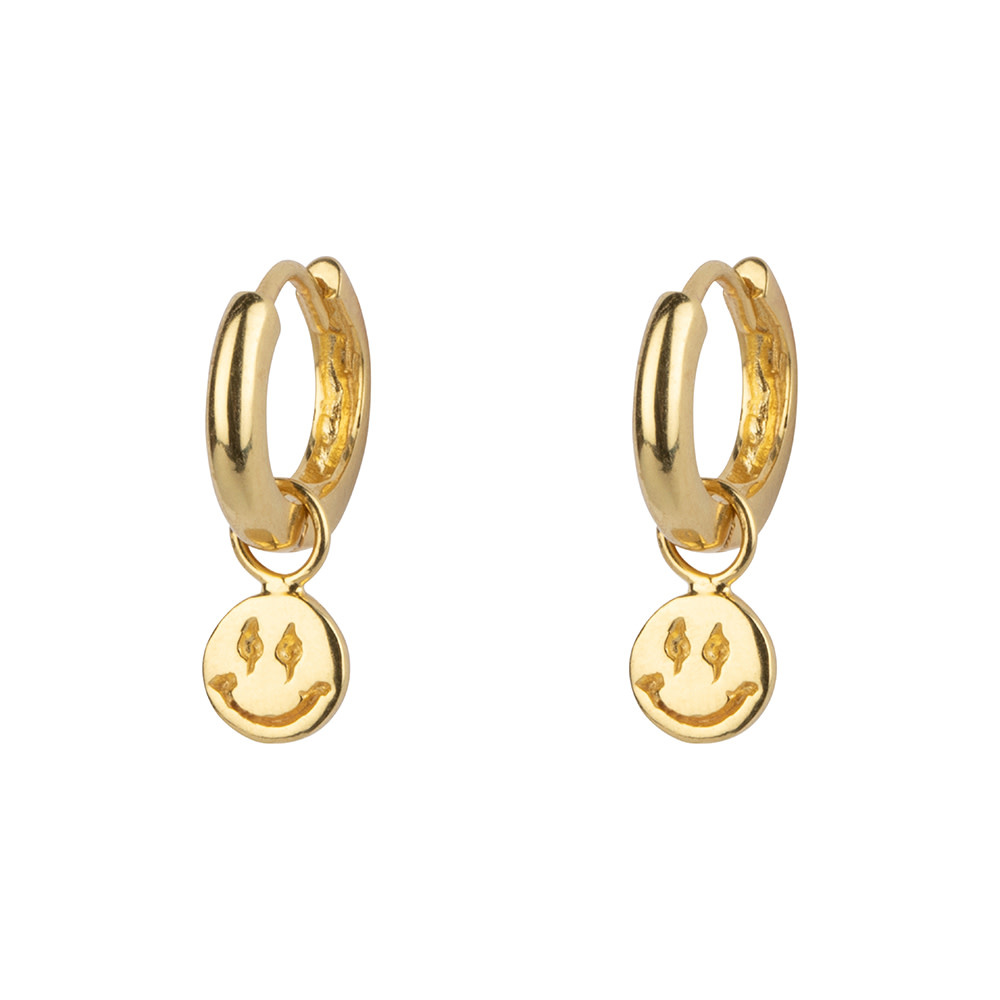 De Smiley Small Hoop Earring is een paar vrolijke oorringen met daaraan een smiley gemaakt van gold plated 925 sterling zilver. Deze hoop oorbellen een diameter van 1 cm.
